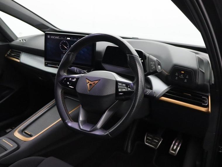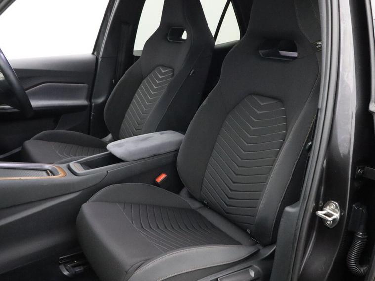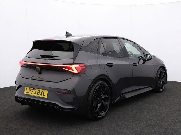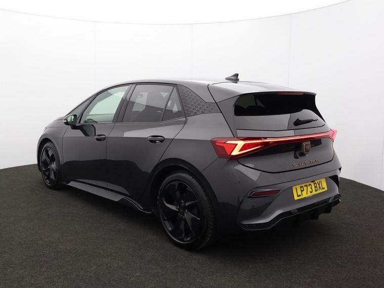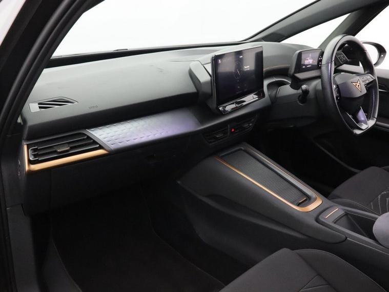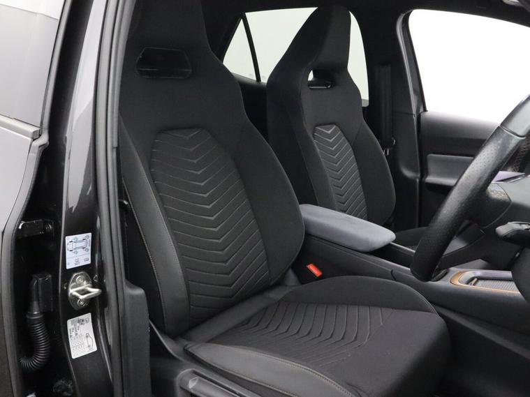 Oakwood Motor Company are delighted to offer this striking CUPRA Born 58kWh V2, finished in an eye-catching design that blends performance, efficiency, and cutting-edge technology. With just one owner from new, this all-electric hatchback delivers an exhilarating yet sustainable driving experience, featuring a 120kW DC charging capacity for rapid recharging and seamless long-distance capability. Step inside to discover a premium cabin equipped with a 5.3-inch digital cockpit, a 12-inch central infotainment display, and wireless Full Link smartphone integration for seamless connectivity. The seven-speaker audio system, DAB radio, and multiple USB-C ports ensure high-quality entertainment, while Climatronic dual-zone air conditioning and multi-coloured ambient lighting create a refined and comfortable atmosphere. Heated front seats and a leather-wrapped multifunction steering wheel with integrated controls enhance driving pleasure. The exterior styling is bold and distinctive, featuring 19-inch machined Typhoon alloy wheels, dark tinted rear windows, and grey electrically adjustable, folding, and heated door mirrors. Full LED headlights with the Welcome Home and Adverse Weather function provide superior visibility, while sports rear shock absorption ensures a dynamic and engaging drive. The augmented reality head-up display adds a futuristic touch, keeping key driving information within your line of sight. Advanced safety and driver assistance features include Forward Collision Warning with automatic braking, Lane Assist, and Park Distance Control for front and rear manoeuvring. The Keyless-Go central locking system and ISOFIX mounting points in the outer rear seats add practicality for everyday use, while Driving Profile Selection allows you to tailor the car's performance to your preference. Call our team today to arrange your viewing or test drive!