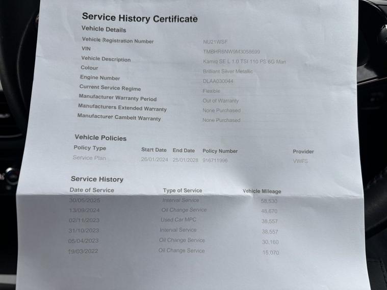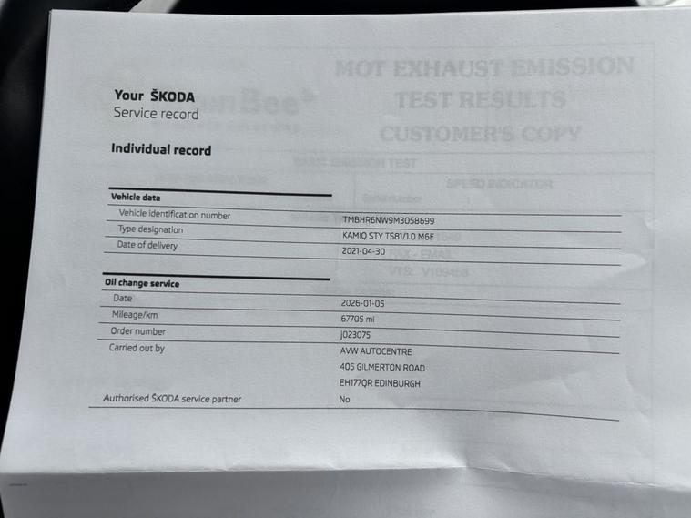 This 2021 Skoda Kamiq TSI SE L boasts a clear vehicle history, offering you peace of mind. This stylish SUV features a responsive 1.0 litre petrol engine, meeting Euro 6 emission standards. Inside, youll find a comfortable cabin equipped with dual zone climate control and Bluetooth connectivity for seamless calls and music streaming. The SE L trim also includes basic LED headlights with LED daytime running lights for enhanced visibility, and rear parking sensors to assist with manoeuvring. Experience the convenience of Wireless Smartlink, which effortlessly integrates your Apple CarPlay and Android Auto devices, keeping you connected on the go. This Skoda Kamiq is designed for efficiency, achieving an impressive fuel economy of 50 miles per gallon, and its low CO2 emissions further highlight its economical and environmentally conscious design compared to other vehicles in its class.