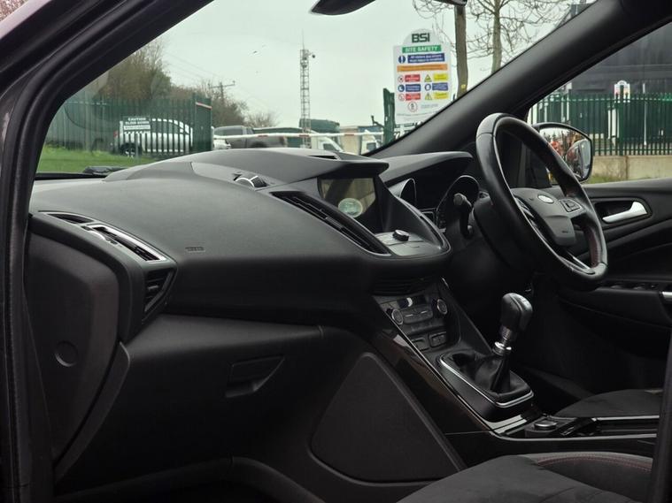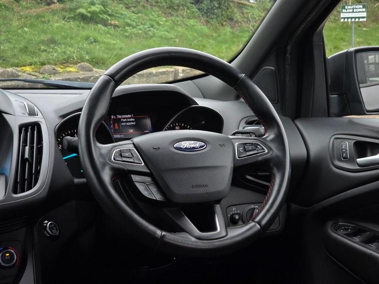 This 2018 Ford Kuga T ST-Line offers excellent peace of mind with its MOT valid until July 2026 and a clear vehicle history check. This stylish SUV is powered by an efficient 1.5L Euro 6 petrol engine, making it a practical choice for everyday driving. The ST-Line trim level brings a sporty feel, complemented by features such as automatic halogen headlights with LED daytime running lights and enhanced active park assist, which includes front and rear parking sensors to aid manoeuvring. Inside, youll find the convenience of DEATC dual-zone electronic automatic temperature control and the Ford DAB Navigation System with Ford SYNC3, offering Bluetooth connectivity for seamless integration of your devices. The Ford Kuga T ST-Line stands out with its impressive fuel economy, achieving up to 45 mpg, which indicates its efficiency compared to other vehicles in its class. This focus on economy, combined with its robust Euro 6 emissions standard, makes it an environmentally conscious option. The inclusion of automatic headlights and advanced parking assistance further enhances the driving experience, providing both comfort and safety. This well equipped 2018 Ford Kuga T ST-Line is ready for its next owner.