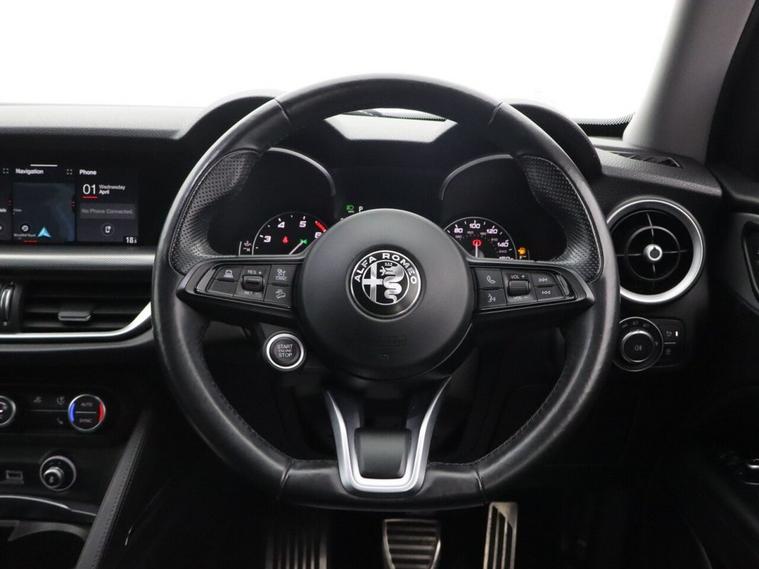 This 2021 Alfa Romeo Stelvio T Sprint offers exceptional provenance, having been owned by just one careful keeper and boasting low mileage for its age at only 36, 993 miles. This Euro 6 compliant, four wheel drive SUV is powered by a responsive 2.0 litre petrol engine, delivering an impressive 0-60mph time of just 7.2 seconds. Its MOT is valid until February 2027, providing peace of mind for the new owner. The Stelvio Sprint is equipped with a host of desirable features designed to enhance your driving experience. Stay connected and entertained with Apple CarPlay and Android Auto integration, managed through the Alfa Connect 3D Nav 8.8 inch infotainment system, which also includes Bluetooth connectivity. For comfort in all conditions, the Cold Weather Pack offers heated seats and a heated steering wheel, complemented by dual zone automatic air conditioning. Parking is made effortless with the Parking Assistance Pack, featuring front and rear sensors along with a rear camera. Furthermore, the generous boot space ensures practicality for all your needs.