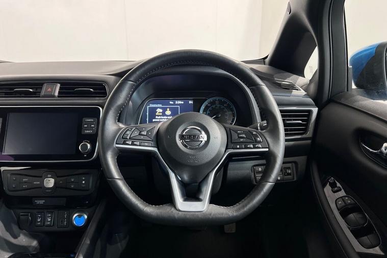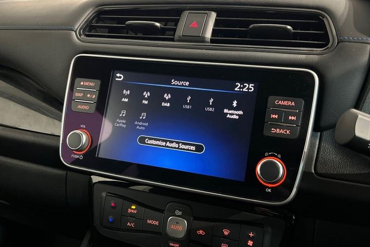 With only one owner and a remarkably low 10323 miles on the clock, this 2021 Nissan Leaf e+ N-Connecta presents an exceptional example of electric motoring. This fully electric vehicle boasts a substantial 62 kWh battery, offering a new vehicle maximum range of 239 miles, ensuring your journeys are both extensive and efficient. Charging at home on a 7kW charger takes approximately 11 hours and 30 minutes for a full charge, while rapid public charging can take you from empty to 80% in just 2 hours. The MOT is valid until July 2026, and a clear vehicle history check confirms its excellent condition. This Leaf e+ N-Connecta is equipped with a suite of advanced features designed to enhance your driving experience. Stay connected and entertained with DAB Radio, compatible with both Apple CarPlay and Android Auto. Navigate with confidence using Intelligent Cruise Control, and benefit from the added safety of Blind Spot Warning and Blind Spot Intervention systems. Comfort is paramount, with the Heat Pack providing heated seats and a heated steering wheel, perfect for colder days. The generous boot space offers practicality for all your needs, and its impressive 0-60mph acceleration in just 6.9 seconds demonstrates its responsive performance, setting it apart from other electric vehicles.