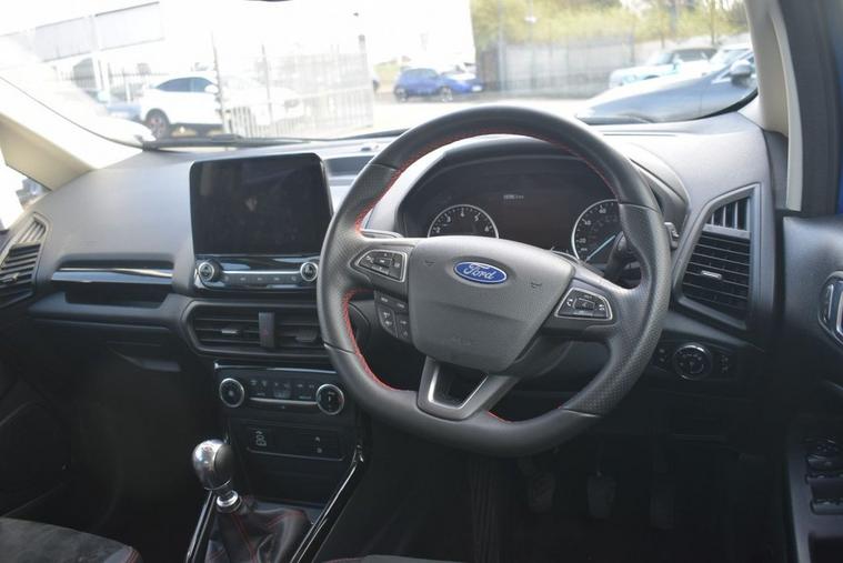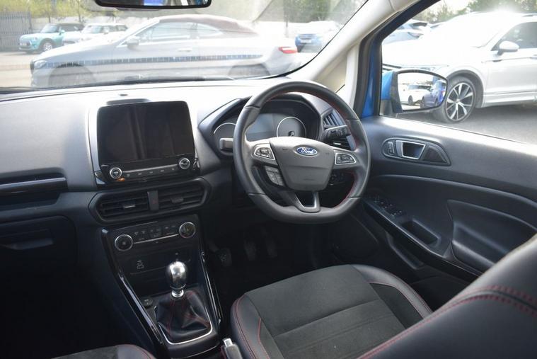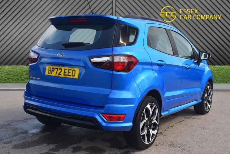 This 2023 Ford EcoSport T ST-Line presents an exceptional ownership proposition with its remarkably low mileage of just 15, 724 miles, a testament to its careful use by its sole owner. This Euro 6 compliant 1.0L petrol model, finished in the sporty ST Line trim, boasts an MOT valid until January 2027 and a clear vehicle history check, offering peace of mind. Its striking appearance is enhanced by 18in Shadow Black machined finish alloy wheels, while the interior comfort is assured by electronic automatic air conditioning. Practicality is also key, with rear parking sensors and automatic headlights featuring LED low beam technology for improved visibility. The fuel economy of this EcoSport is a significant highlight, achieving an impressive 46 miles per gallon, which indicates its efficiency compared to many other vehicles in its class. This combination of low mileage, single ownership, comprehensive MOT, and excellent fuel efficiency makes this particular Ford EcoSport ST Line a stand out choice for those seeking a well maintained and economical compact SUV.