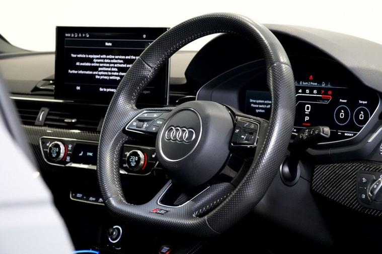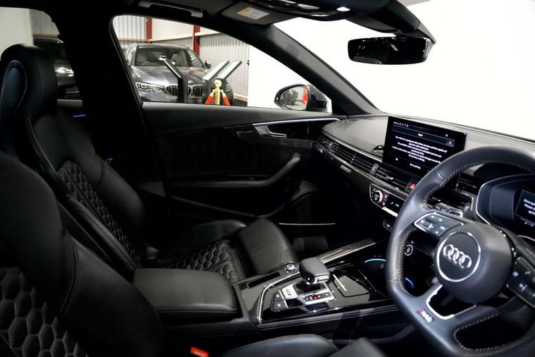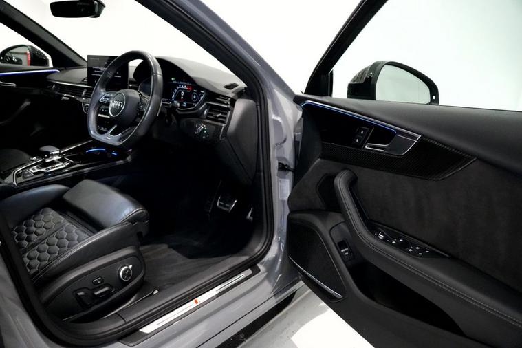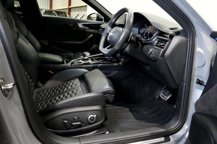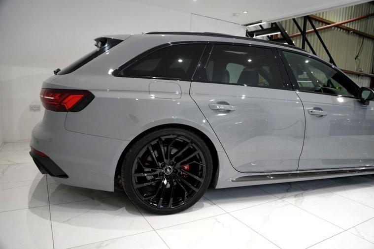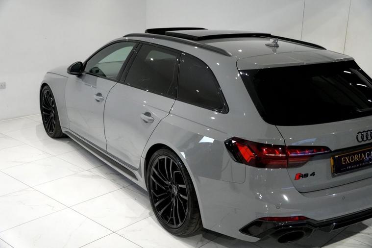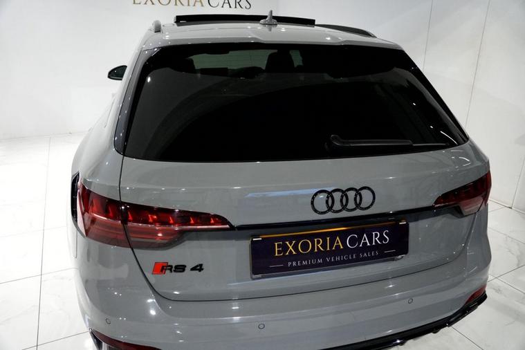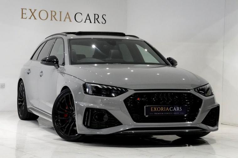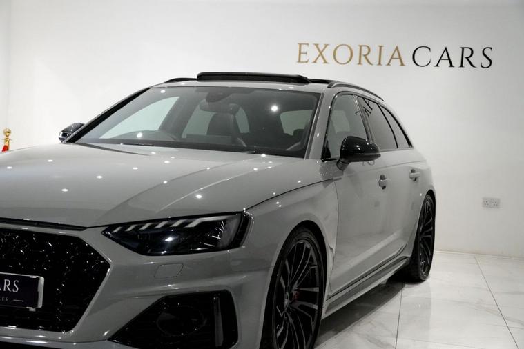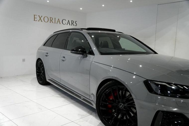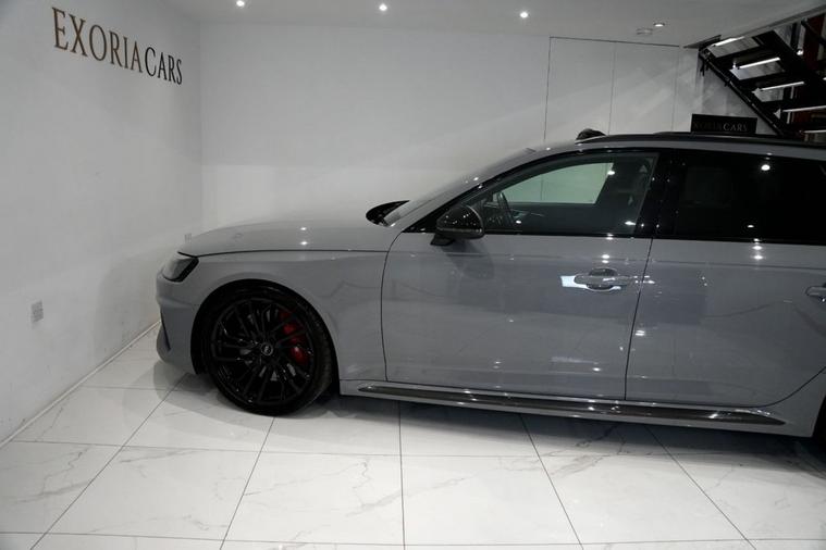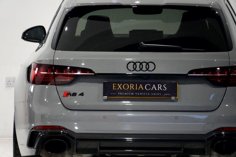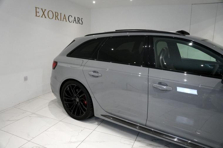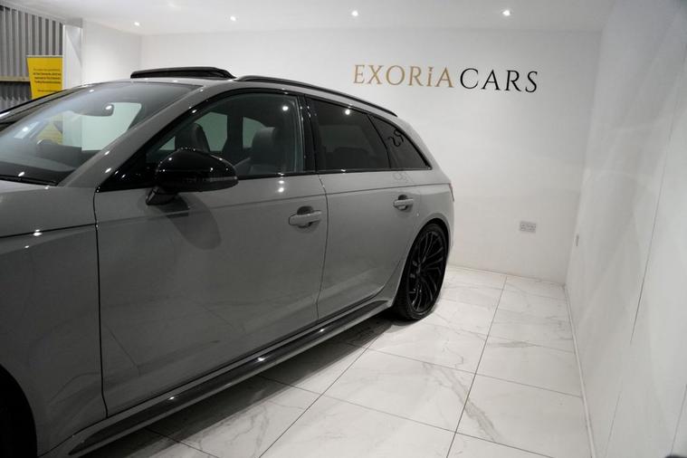 Exoria Cars are pleased to offer this AUDI RS4 AVANT 2.9 TFSI V6 Carbon Black Estate 5dr Petrol Tiptronic quattro Euro 6 (s/s) (450 ps) registered on the 16/03/2020. This particular model is presented in Nardo Grey featuring 20in Alloy Wheels - Segment-Spoke Evo Style Design in Glossy Black Audi Sport. This vehicle has many optional spec extras. These include (but are not limited to) Bang & Olufsen Surround Sound Speakers, Panoramic Glass Sunroof, RS Sports Exhaust System, Fine Nappa Leather - RS Super Sports Black with Rock Grey Honeycomb Contrast Stitching, Massaging & Heated Seats, 360* Camera, LED Interior Light Package, Audi Matrix LED Headlights, Red Brake Calipers in High-gloss Finish with RS Logo at the Front, active safety features and much more. For full details please do enquire via email or phone. This vehicle comes with 2 keys, Full Audi Service History (JUST SERVICED BY AUDI 02/2026) a full (clear) HPI check and a 6 month warranty with Autogaurd. All 5* reviews on all platforms giving you peace of mind with your new purchase! AA CARS APPROVED DEALER. All of our vehicles are thoroughly inspected before sale ensuring peace of mind to all customers of Exoria Cars. AA Checks/RAC Checks are welcome! Any used car purchase also qualifies for a free interior and exterior deep clean detail worth £400 with our partnered company DD Detailing who are one of the largest detailing companies in the UK. This vehicle is ready to drive away today! PCP and HP finance available from 8.9% APR (subject to status). 2 Owners.
