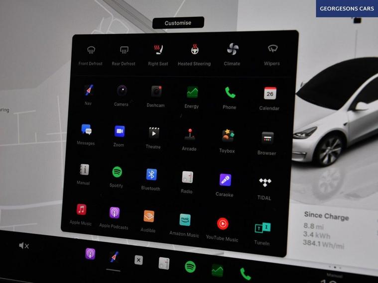The Tesla Model Y Long Range RWD combines a powerful rear electric motor with 283hp, delivering 0-62mph in 6.6 seconds and up to 320+ miles WLTP range in this rear-wheel-drive setup with instant single-speed transmission. This premium electric SUV offers minimalist luxury and advanced technology. With one owner, this Model Y is in excellent condition. Enjoy the expansive panoramic glass roof and convenient electric tailgate. Stay connected with satellite navigation, Bluetooth and DAB radio. Parking is effortless with 360-degree camera and parking sensors. Stay comfortable with climate control, front and rear heated seats and heated steering wheel. Adaptive cruise control with lane assist delivers semi-autonomous, stress-free driving every day. The spacious five-door SUV includes a 854-litre rear boot plus a 117-litre frunk for outstanding practicality.