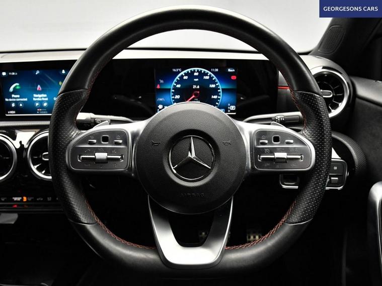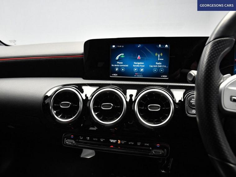 The Mercedes-Benz A220 AMG Line combines a responsive 2.0-litre turbo petrol engine with 190hp, delivering 0-62mph in 6.9 seconds and up to 49.6mpg in this front-wheel-drive setup with a smooth 7-speed DCT automatic transmission. The AMG Line trim brings sporty styling with 18-inch alloys, lowered suspension and premium interior. With nine services, this A-Class is in excellent condition. Stay connected with Bluetooth, DAB radio and integrated satellite navigation. Parking is easy with the reverse camera. Stay comfortable with air conditioning and dual-zone climate control. Adaptive cruise control with speed limiter and lane assist enhance safety and relaxation on every journey. The practical five-door hatchback includes a 370-litre boot.