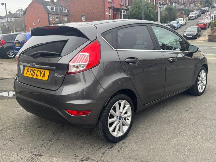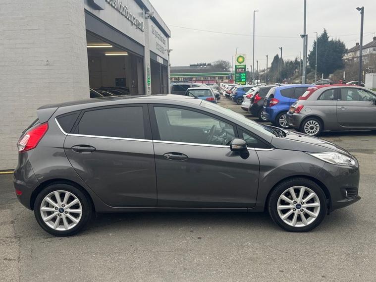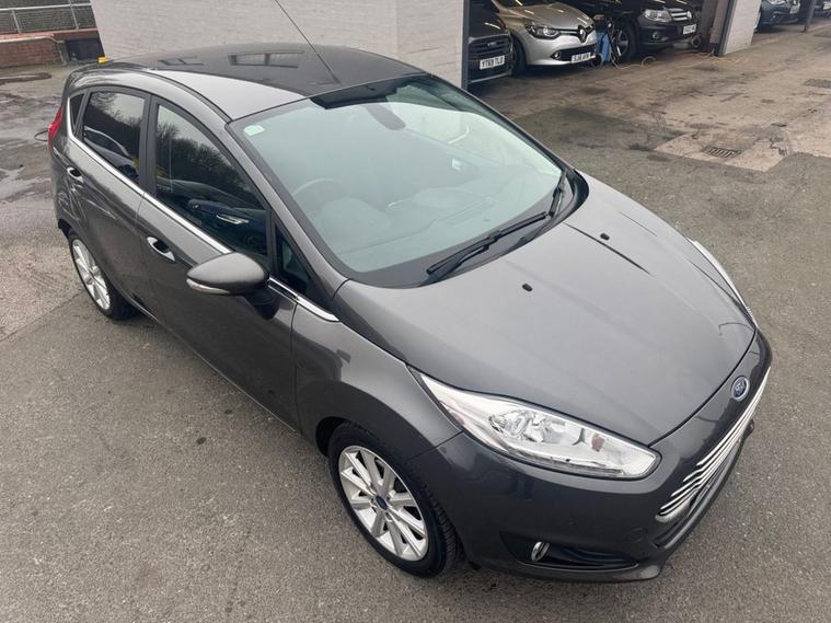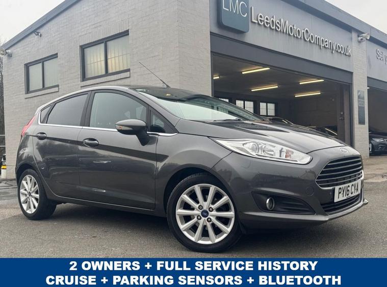 Stunning condition Ford Fiesta 1.0 Titanium finished in Magnetic grey paint with 16 silver alloys. Only 2 owners from new, full service history - 8 service stamps on record to 31, 000. Only £20 year road tax and over 60 miles per gallon combined fuel economy. Spec includes Bluetooth phone calling Multi-function steering with Cruise control, air con, Front + Rear parking sensors, power folding wing mirrors, Push button start, Auto headlights, Front/Rear heated windscreens, AUX/USB input, and much more. Call 01138032273 or visit dealer's website