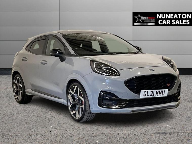 Ford Puma 1.5T EcoBoost ST - Apple Car Play, Android Auto, Recaro Seats, Wind Deflectors - Part Service History The 2021 Ford Puma ST 1.5T EcoBoost ST is a sporty compact SUV that blends everyday practicality with genuine hot-hatch performance. Powered by a punchy 1.5-litre turbocharged EcoBoost petrol engine producing 200 ps, paired with a slick 6-speed manual gearbox, it delivers an exciting and engaging driving experience with sharp handling and impressive acceleration. Capable of 060 mph in around 6.4 seconds (062 mph in 6.7 seconds), it offers serious performance while still remaining practical and efficient for daily use. The ST model features distinctive sporty styling including aggressive body styling, large alloy wheels, sports suspension and performance brakes, while the interior offers supportive sports seats, modern infotainment and advanced driver technology. With its combination of performance, practicality and striking design, the Puma ST is a fantastic choice for drivers wanting a fun, well-equipped and versatile performance SUV. Combining comfort, performance and practicality, this model is perfect for drivers seeking sporty styling with everyday usability. Service History Part service history recorded as follows: 27/03/2024 @ 32011 miles 21/02/2025 @ 40054 miles 10/07/2025 @ 43413 miles March 2026 Nuneaton Car Sales Key Features & Specification 19 Inch Alloy Wheels Full LED Lighting Front and Rear Parking sensors / Reverse camera Cruise Control Air Conditioning / Dual-Zone Climate Control Satellite Navigation DAB Digital Radio Bluetooth Connectivity USB / Voice Control ISOFIX Child Seat Mounts Driver Assistance Features Start/Stop Technology Vehicle Information Registration: 29/04/2021 Mileage: 50588 miles Fuel Type: Petrol Transmission: 6 Speed Manual Owners: [3] HPI Status: Clear Why Buy From Nuneaton Car Sales? * Multi Award-Winning Dealership * AA Approved Dealer * NO ADMIN FEES * 12 Months AA Breakdown Cover * Multi-Point Vehicle Inspection * Free MOT if due within 6 months * Competitive Finance Available * Part Exchange Welcome * Click & Collect & Home Delivery Available * Same Day Drive Away on most vehicles Extra Peace of Mind Personalised walk-around videos available on request. All vehicles professionally prepared and valeted prior to sale. This vehicle is price-checked daily against the UK market to ensure excellent value. Every effort is made to ensure vehicle information is accurate. Specification data may be supplied by a third-party source. If a particular feature is important to your purchase decision, please contact our sales team who will be happy to confirm.
