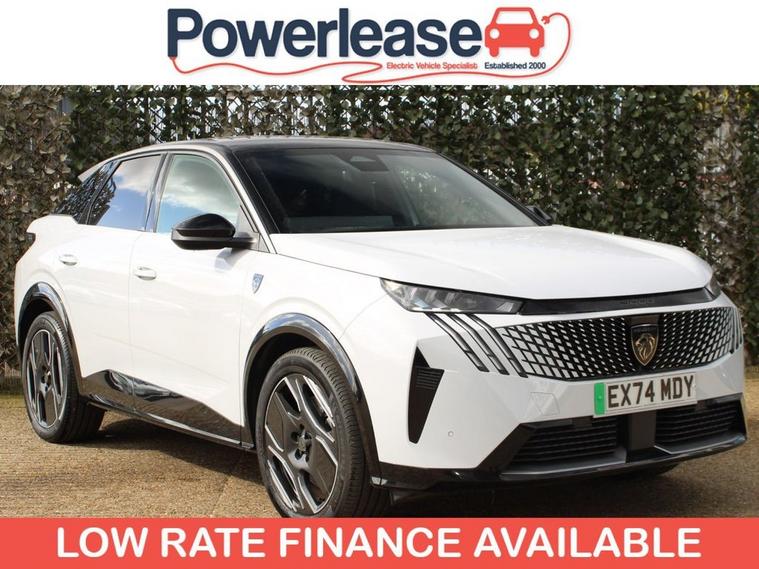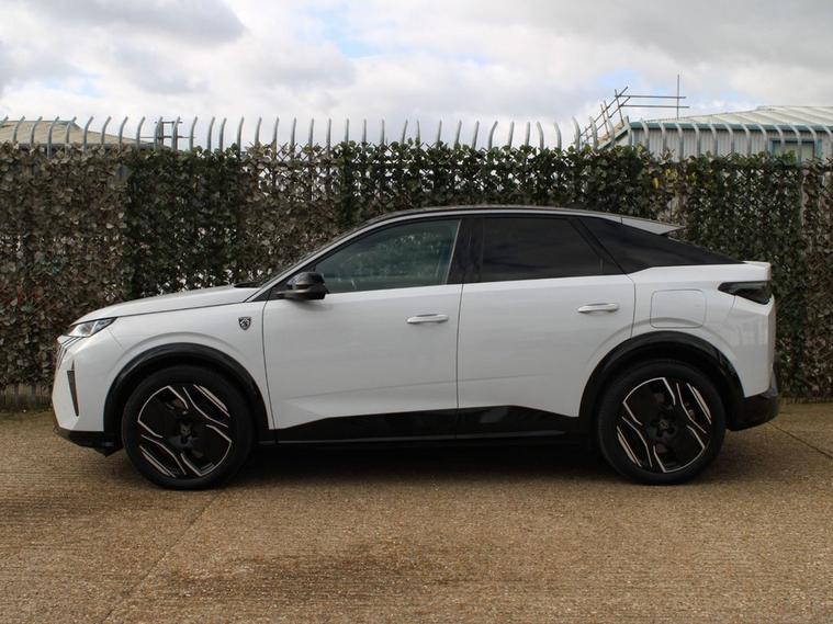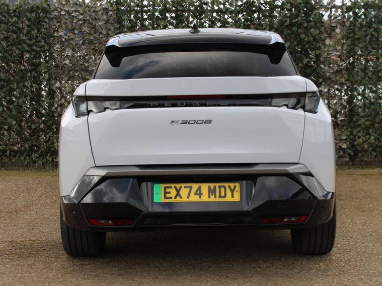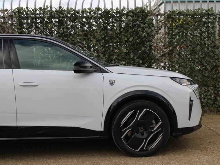 **95.9% BATTERY HEALTH** 2024 Peugeot E-3008 GT is a superb example, having had only one owner since new. As a fully electric vehicle, it offers a compelling blend of advanced technology and impressive capability. The GT trim level ensures a premium experience, complemented by a substantial 81 kWh battery that provides a maximum range of 326 miles on a full charge. Convenience is further enhanced with features such as automatic headlights, heated front seats, and dual zone automatic climate control. For effortless parking, a reversing camera with a washing function is included, and the quick launch cabin heating and cooling function ensures comfort in any weather. The electric powertrain of this E-3008 GT delivers a maximum range of 326 miles, setting a high standard for electric SUVs. Charging is also designed for convenience, with a full charge at home using a 7kW charger taking approximately 8 hours, ideal for overnight top ups. For longer journeys, the fastest public charging time from empty to 80% is an efficient 40 minutes. These highlights demonstrate how this Peugeot E-3008 GT offers a refined and practical electric driving experience, superior to many other vehicles in its class.
