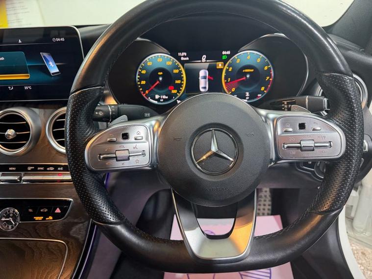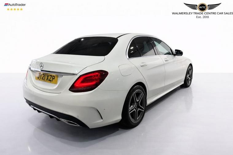 This exceptional Mercedes-Benz C-Class C300 AMG Line Edition (Premium) (OY21 XZP) is finished in White and offers the perfect balance of luxury, performance and cutting-edge technology. First registered in 2021, this stunning example has covered just 29, 566 miles and is powered by a responsive 2.0-litre turbocharged petrol engine producing 258 ps, paired with the smooth G-Tronic+ automatic gearbox. The result is strong performance combined with refined comfort, making it equally at home on long motorway journeys or everyday driving. This vehicle benefits from service history and is supplied with 2 keys, demonstrating careful ownership and maintenance. The AMG Line Edition with Premium Package provides a high level of specification, including MULTIBEAM LED headlights, a 12.3-inch digital instrument display, a 10.25-inch high-resolution multimedia display, reversing camera with Active Parking Assist and PARKTRONIC, heated front seats, dual-zone climate control and ambient interior lighting. Smartphone integration with Apple CarPlay and Android Auto ensures seamless connectivity on the move. Inside, the cabin reflects Mercedes-Benzs renowned quality, featuring AMG sports seats, black open-pore ash trim, a flat-bottom AMG Nappa leather multifunction steering wheel and brushed stainless steel sports pedals. The exterior styling is enhanced by AMG body styling, privacy glass, 18-inch AMG Aero alloy wheels and twin integrated exhaust finishers, giving the car a distinctive and sporty presence. Combining low mileage, full service history and a premium specification, this C300 AMG Line Edition represents a superb opportunity to own a modern Mercedes-Benz executive saloon.