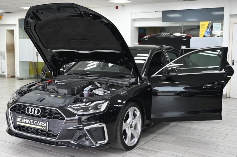 DRIVE AWAY TODAY OR FREE HOME DELIVERY ANYWHERE IN MAINLAND UK FINANCE & PART EXCHANGE ARRANGED ONLINE **7 DAY MONEY BACK GUARANTEE** Nice car Audi a4 tfsi 40 s-line quattro s-tronic in metallic black with service history EXTENDED AUDI WARRANTY UNTIL 30/12/2026 sat nav dab radio bluetooth media phone apps usb reverse camera half black s-line leather seats with leather armrest heated seats electric heated door mirrors front and rear parking aid sensors xenon lights s-line steering wheel with f1 style paddleshifts auto comfort efficiency individual dynamic driving modes push button start stop s-line bodystyling kit alloys privacy