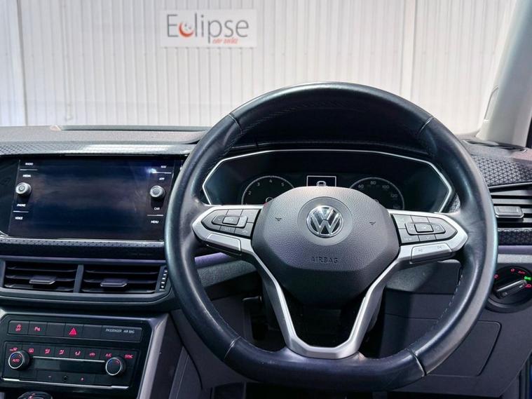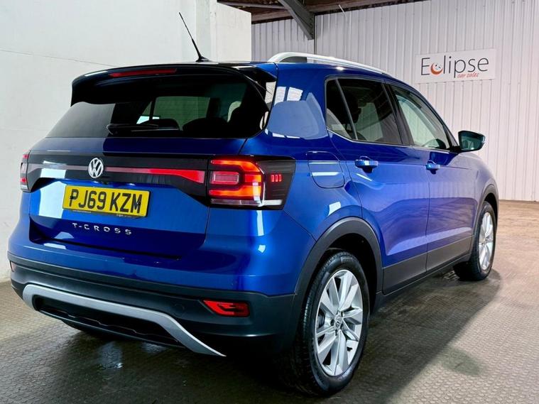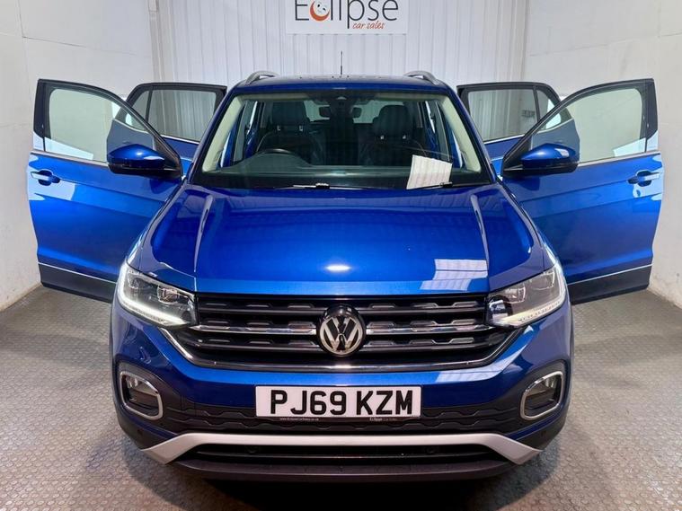 Volkswagen T-Cross 1.0 TSI SEL DSG Automatic first registered November 2019. Finished in Reef Blue Metallic with cloth interior and 17 inch twin spoke alloy wheels. Specification includes dual USB phone charging ports, reverse camera with front and rear parking sensors, DAB radio, satellite navigation, apple carplay/android auto, automatic headlights, multifunction steering wheel, dual zone climate control, adaptive cruise control and heated door mirrors. Serviced at 2391 | 11587 | 13549 | 17327 | 20208