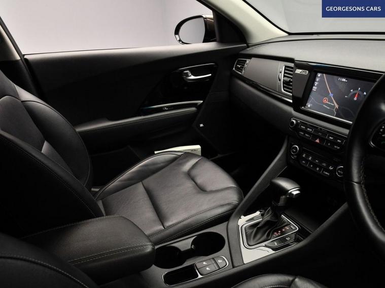 The Kia Niro 1.6 GDi PHEV 3 combines a 1.6-litre petrol engine with an electric motor for a total 141hp, delivering 0-62mph in 10.8 seconds, up to 36 miles pure-electric range and an official 217mpg in this front-wheel-drive setup with a smooth 6-speed DCT automatic transmission. The 3 trim offers premium family features with 16-inch alloy wheels and a spacious, high-grade interior for refined plug-in hybrid SUV driving. Navigate effortlessly with integrated satellite navigation, Apple CarPlay, Bluetooth and DAB radio, ensuring seamless connectivity on every journey. Parking is a breeze thanks to the reverse camera, providing clear visibility and confidence in tight spaces. Stay comfortable with dual-zone climate control, electric heated front seats and heated steering wheel, offering all-season luxury. Adaptive cruise control with speed limiter and lane assist enhance safety and relaxation on highways. The spacious five-door SUV design includes a 427-litre boot for practicality