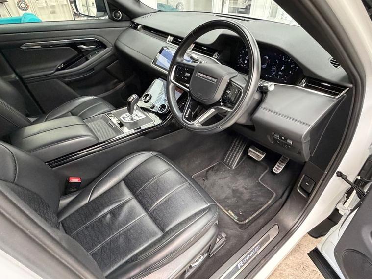 Finished in crisp Fuji White, this Land Rover Range Rover Evoque 2.0 P200 MHEV R-Dynamic HSE presents a striking combination of modern luxury, advanced technology and unmistakable Range Rover design. Powered by a refined 2.0-litre petrol engine producing 200 ps and supported by mild-hybrid technology, it delivers smooth, responsive performance while maintaining impressive efficiency. The automatic gearbox works seamlessly with Land Rovers intelligent four-wheel drive system, ensuring confident handling and composure whether navigating city streets or venturing further afield. The R-Dynamic HSE specification represents one of the highest and most desirable trim levels in the Evoque range, combining sporty styling with a generous level of luxury and technology. The exterior design is both bold and elegant, enhanced further by the Black Styling Pack which adds gloss black exterior accents that contrast beautifully against the Fuji White paintwork. Large 21-inch Halo alloy wheels complete the look, giving the Evoque a powerful road presence while perfectly filling the arches and emphasising its athletic stance. Privacy glass adds to the sleek appearance while also providing additional comfort and discretion for rear passengers. Inside, the cabin reflects the premium nature of the R-Dynamic HSE model with a beautifully designed interior that blends high-quality materials with cutting-edge technology. The driver is greeted by a modern, clean dashboard layout with dual touchscreen displays, intuitive controls and a digital driver display that keeps all key information clearly within view. The seating offers excellent comfort and support, making the Evoque just as enjoyable on longer journeys as it is on daily drives. The R-Dynamic HSE specification also brings an elevated level of convenience and driver assistance technology, ensuring the vehicle feels both sophisticated and easy to live with. Everything about the Evoques interior has been designed to create a calm, refined environment while maintaining the sporty edge expected from the R-Dynamic line. With its distinctive Fuji White finish, Black Styling Pack, striking 21-inch Halo wheels and premium R-Dynamic HSE specification, this Range Rover Evoque delivers the perfect balance of style, luxury and performance. It is a compact SUV that carries the prestige of the Range Rover name while offering modern technology, strong performance and standout road presence. Service History 07/01/2025 @ 21399 miles 18/01/2023 @ 9279 miles 14/01/2021 @ 6 miles