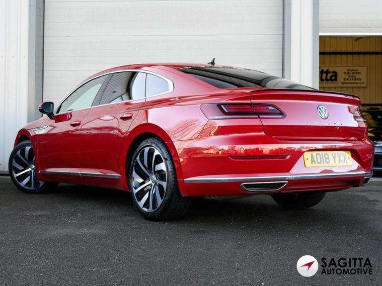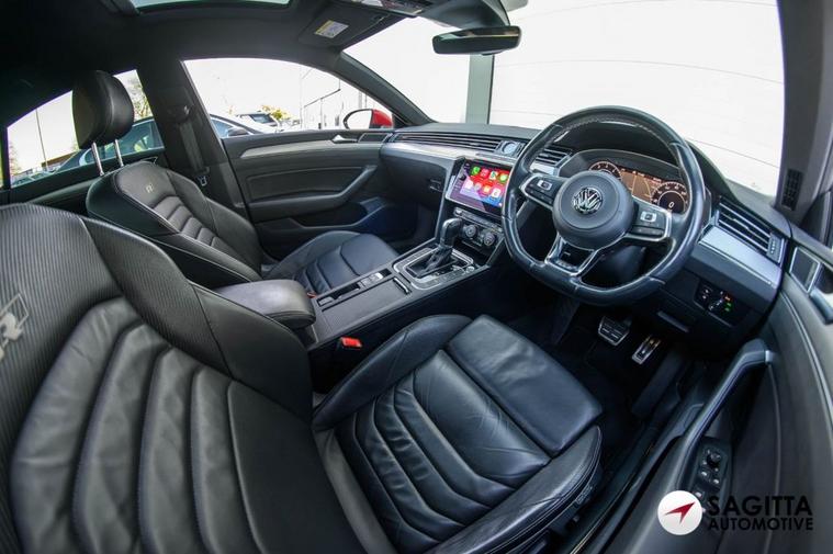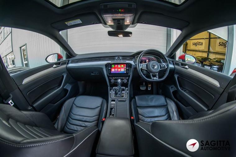 Sagitta is delighted to present for sale this stunning VW Arteon 2.0 TSI R-Line Fastback DSG in Metallic Chili Red with a Full Black Vienna Leather Interior, The car benefits from the following specifications, Full Screen Satellite Navigation System, Bluetooth, Voice Control, Lane Assist, DAB Radio, Apple Car Play, Adaptive Cruise Control ACC with Speed Limiter and Front Assist, Electric Heated Front Seats, Parking Sensors, Electric Folding Mirrors, Chrome Trim On Upper and Lower Air Vents Extending Across Cockpit, Keyless Entry - Including Start-Stop Button in the Centre Console, Heated Door Mirrors, Electric Glass Sliding Panoramic Sunroof, R-Line Body-Coloured Bumpers, 19in Alloy Wheels - Montevideo, Privacy Glass, Rain Sensor, Service History serviced at VW at 16726 miles, major service at 48667 miles at a German Specialist, then at 59494 miles at an Independent and the most recent at an Independent at 71159 miles on the 09.01.2026 , MOT till 09.01.2027, 2 Keys, More photos are available on our website, Finance Available, Part Exchange Welcome, all our cars come with a complimentary 6-month Warranty, and 12 months of AA Roadside Assistance, All our cars are professionally cleaned and sanitized, Video walk rounds of any car can be sent to you, Nationwide delivery available, Deposits can be taken over the phone, Payments can be made via bank transfer, Finance applications can be completed online. While every effort is made to ensure the above details are correct there may be some discrepancies so please make sure to contact us for exact specifications and history on this vehicle.