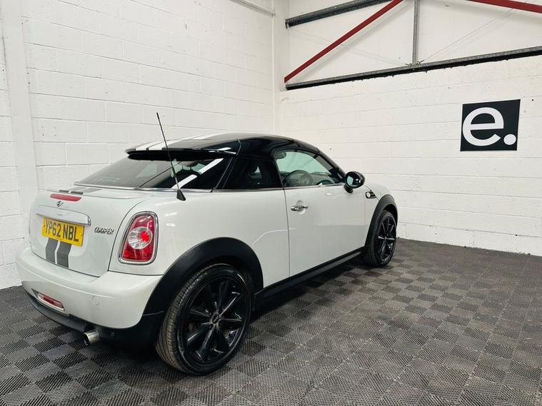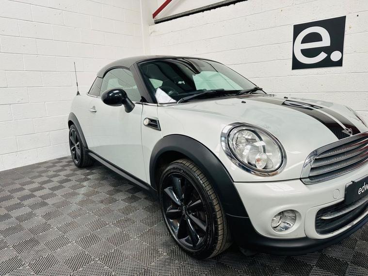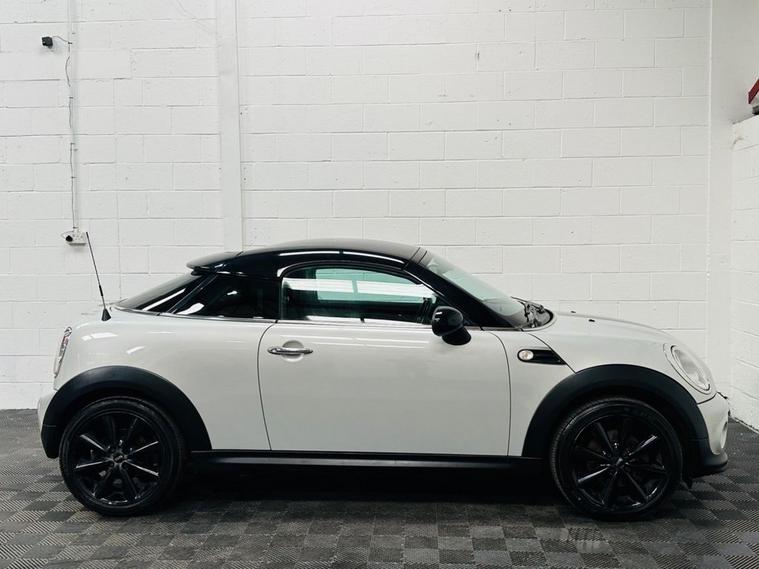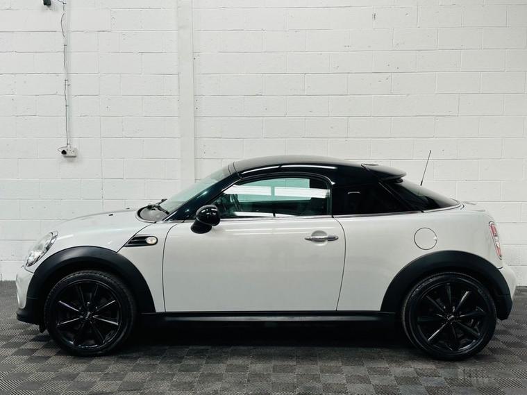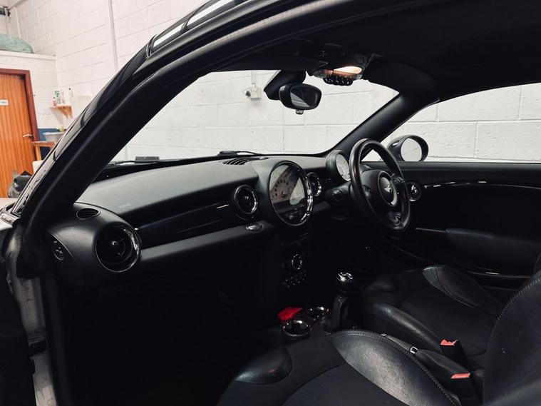 MINI 1.6 Cooper Coupe in White Silver Metallic with Carbon Black Interior Trim. Sport Seats, Service History.
