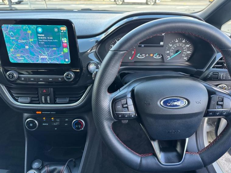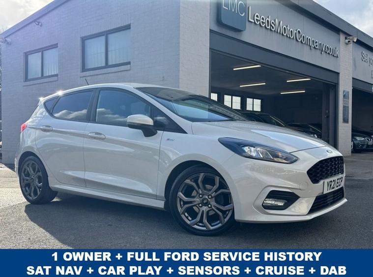 STUNNING CONDITION Ford Fiesta 1.0 ST-Line finished in Metropolis White paintwork (£675 optional upgrade) with 17 Grey alloys. Only 1 OWNER from new and full Ford service history. Spec includes sat nav, apple car play / android auto, Bluetooth phone calling and audio streaming, Multi-function steering with Cruise control, air con, Rear parking sensors, Push button start, Auto headlights, Front/Rear heated windscreens, AUX/USB input, Lane warning system and much more. Call 01138032273 or visit dealer's website