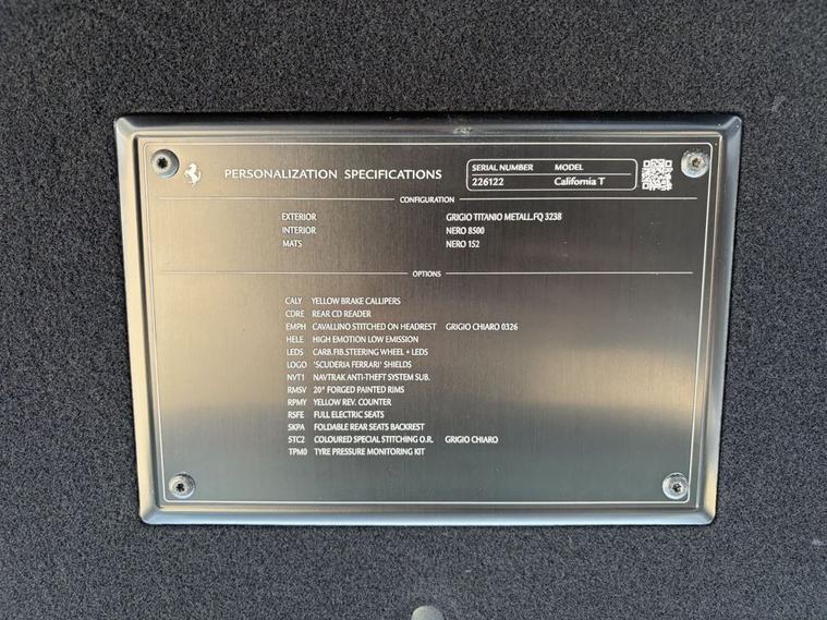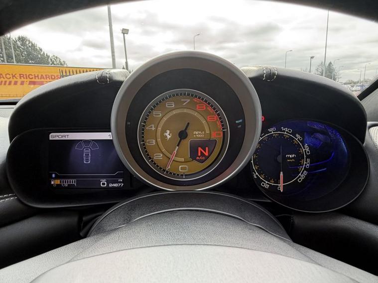 SCUDERIA SHIELD|CERAMIC BRAKES-Electric heated memory seats, Embossed head rests, Carbon fibre multi function steering wheel, Yellow calipers, Scuderia shields, Ceramic brakes, Launch control, Driving modes, finished in Metallic Grey paintwork with a Black Leather interior & white contrast stitching, 20 Spider alloys, Satellite navigation, Parking sensors, Paddle shift, 2 Zone climate, Quad exhaust, Electric boot, Bluetooth, DAB radio, USB, Auto dimming rear view mirror, Electric folding wing mirrors, Automatic lights, UK Vehicle, 19in Alloy Wheels - Painted, 6.5in Touch Screen, Airbag - Passenger, Airbag - Side, Anti-Theft Satellite System with 1 Year Subscription, Battery Maintainer, Bi-Xenon Headlights, Bluetooth, Bluetooth Audio Streaming, CCM - Carbon-Ceramic Brake System, Cruise Control, DAB Radio, Daytime Running Lights, Dual Zone Air Conditioning System, EBD - Electronic Brakeforce Distrubution, ESC - Electronic Stability Control, Electric Heated Side Mirrors with Automatic Closure, Electric Speed Sensitive Power Assisted Steering, Engine Start Button on Steering Wheel, F1-Trac - Traction Control System, Front Parking Sensors, Full Electric Seats, HELE - High Emotion Low Emission, Headlight Cleaning System, Infotelematic System with Maps Navigation with Touch Screen 6.5in, Integrated Anti-Theft Alarm, Key with Transponder, Launch Control, Lighting Sensor, Nav Trak, Race Manettino - Integrated Command for Control of Vehicle Set Up on Steering Wheel Manettino, Rain Sensors, Rear Lights with LEDs, Rear Parking Sensors, Remote Control Locking, Remote Control for Opening Tailgate, TPTMS - Tyre Pressure and Temperature Monitoring System, USB Connection