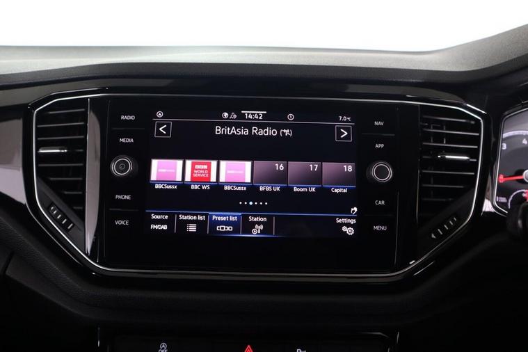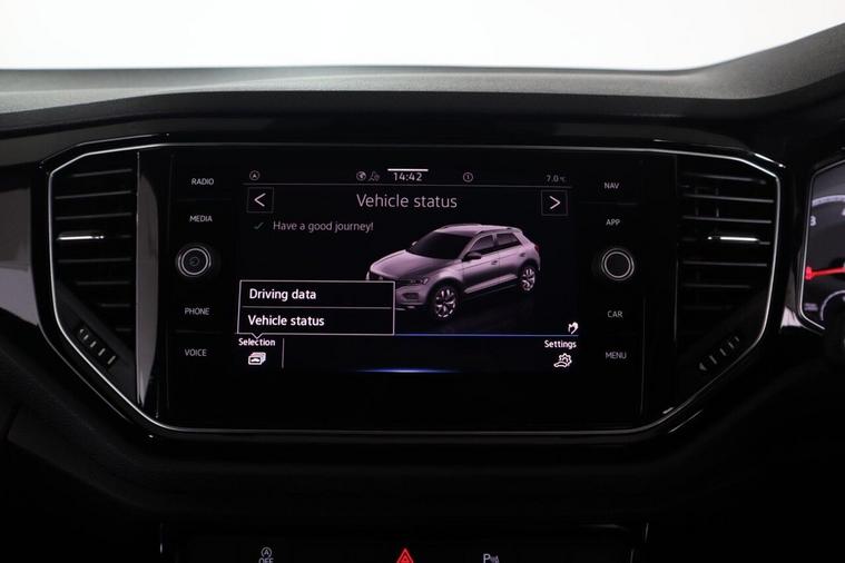 The Volkswagen T-Roc TSI EVO Black Edition is a 2021 model that boasts a 1.5L Petrol Engine, making it a great option for those seeking a fuel-efficient vehicle. This Black Edition variant has been well-maintained, with a full dealership service history and a clear vehicle history check. The current mileage of 18, 635 miles is remarkably low for its age, suggesting that this car has been well cared for. With only one owner from new, you can be confident in the vehicle's history. The T-Roc also features a range of advanced technologies, including the Ready 2 Discover Infotainment System with Bluetooth connectivity, Wireless App Connect with Android Auto and Apple CarPlay, and a Climate Control system with automatic air recirculation and an allergen filter. Additionally, the vehicle is equipped with LED headlights and Adaptive Cruise Control for a safer and more comfortable driving experience. The Volkswagen T-Roc TSI EVO Black Edition is a standout model in its class, with impressive acceleration that can take you from 0-62mph in just 8.6 seconds. This indicates that the vehicle is one of the quicker options in its segment, making it a great choice for those who enjoy a spirited drive. With a low insurance group, you can also expect lower premiums, making this car an even more attractive option. The T-Roc's Euro 6 emission class also means that it meets the latest environmental standards, giving you peace of mind when it comes to running costs and the impact on the environment. Overall, this Volkswagen T-Roc TSI EVO Black Edition is a great choice for anyone looking for a reliable, feature-packed, and fuel-efficient vehicle.