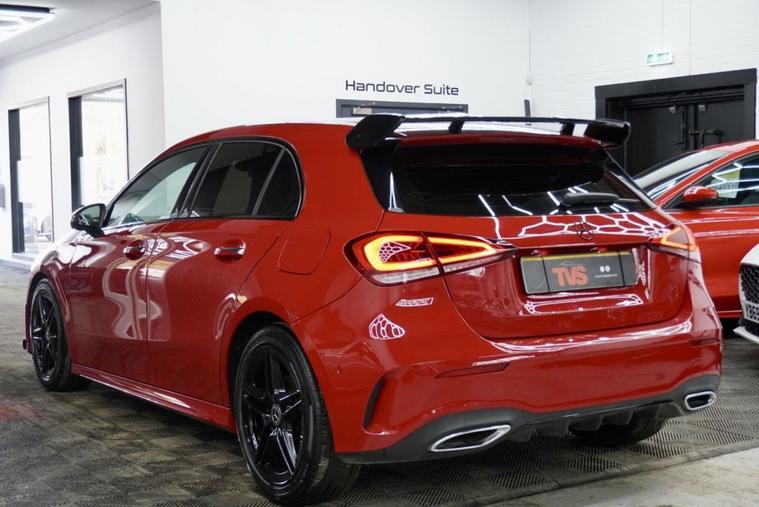 2019 Mercedes Benz A180d AMG Line Premium 7G DCT 116ps 5 door hatchback - Automatic - Jupiter Red with half leather and half alcantara interior (heated front seats) - 66k miles from new - only 1 former keeper - 2 remote keys - Great service history (3 Mercedes main dealer & 2 independent garage services) - just serviced for sale by German car specialist - Fresh 12 months MOT with no advisories - Platinum warranty - full 12 months AA roadside assistance also included! A45 Aero Pack! Night Pack! Gloss black AMG alloy wheels! Ambient lighting! Widescreen navigation! AMG floor mats! Rear view camera! Rear sun protection glazing!