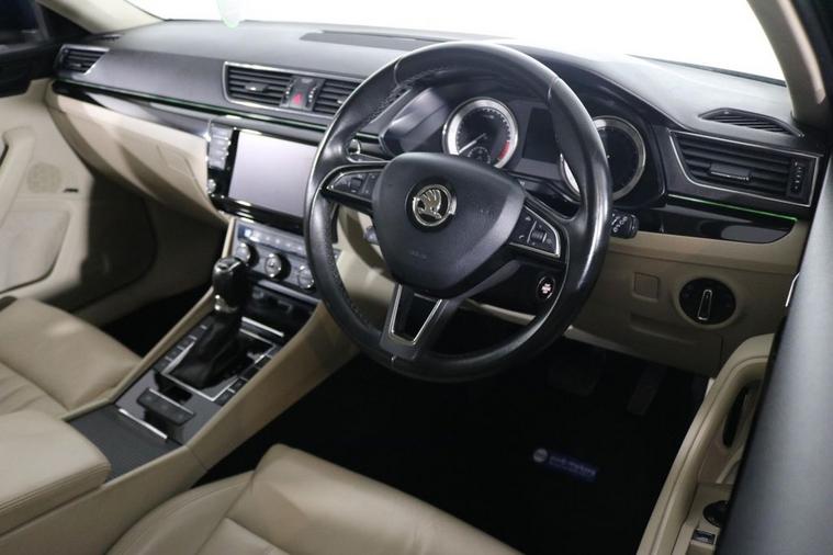 This desirable AUTOMATIC Skoda Superb Laurin & Klement finished in Petrol Blue looks fantastic complemented by 18 inch Alloy Wheels and LED Running Lights. Enjoy economical motoring with JUST £35 ROAD TAX and up to 68 MPG. Find your way with integrated SATELLITE NAVIGATION with 8 inch TOUCHSCREEN Display. Keep connected to your Phones APPS through APPLE CARPLAY, ANDROID AUTO and MIRROR LINK. Sit in luxury with FULL BEIGE LEATHER Upholstery with HEATED / ELECTRIC Front Seats. Park in ease with FRONT & REAR PARKING SENSORS with PARK ASSIST. Keep connected with BLUETOOTH Phone System. Listen to your music through DAB Digital Radio with Canton Sound System. Comfortable to drive with Tri-Zone CLIMATE CONTROLLED AIR CONDITIONING and ADAPTIVE CRUISE CONTROL. Well equipped with Power-Fold Door Mirrors, Auto BI-XENON Headlights and Rain-Activated Wipers. Safe to journey with Blind Spot Detection, Driver Alert, Lane Assist and Front Assist. Also fitted with ISOFIX seats, Multifunctional Steering Wheel, Drive Mode Select, Immobiliser, Alarm and Remote Door Locking with 2 x keys. Buy in confidence with SERVICE HISTORY with 7 x Documented Services including NEW CAMBELT Fitted 10/07/2024 at 84, 453 Miles.