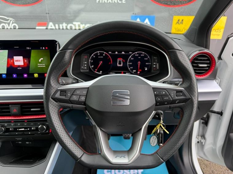 This 2023 SEAT Arona TSI FR Sport is a superb example, having had only one owner since new. This stylish compact SUV boasts a responsive 1.0 litre Euro 6 petrol engine, ensuring an efficient drive. Inside, youll find a host of modern conveniences designed to enhance your journey, including Full LED automatic headlights for optimal visibility, and Full Link smartphone integration which seamlessly connects your Android Auto or Apple CarPlay. Comfort is also a priority, with dual zone climate control to keep everyone happy and a handy wireless phone charger to keep your devices powered up. The SEAT Arona TSI FR Sport stands out with its impressive fuel economy, achieving a highlight of 51 miles per gallon, and its low CO2 emissions, demonstrating its efficiency compared to similar vehicles. For added peace of mind and ease of use, rear parking sensors are fitted, making manoeuvring in tight spaces simpler. This combination of a single owner, excellent fuel efficiency, and desirable technology makes this Arona a compelling choice.