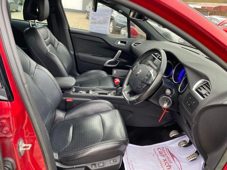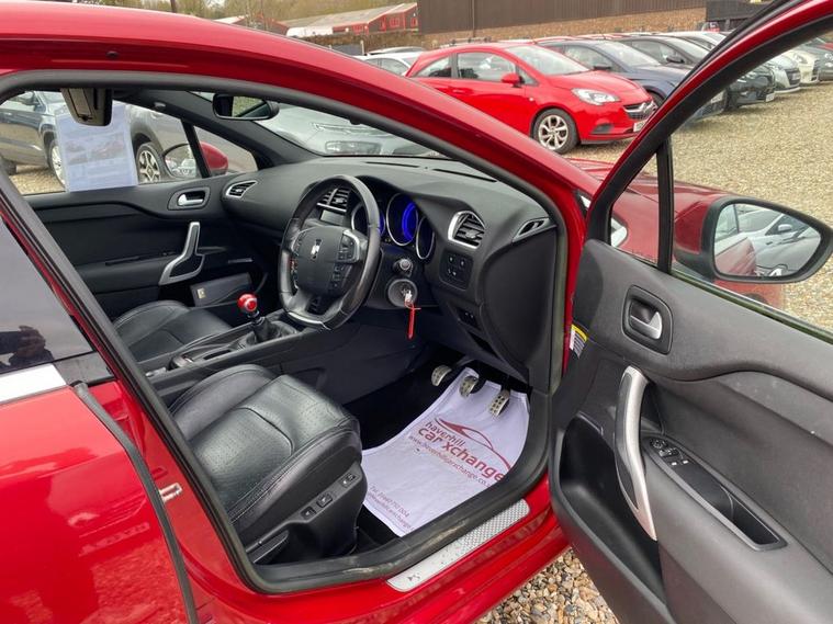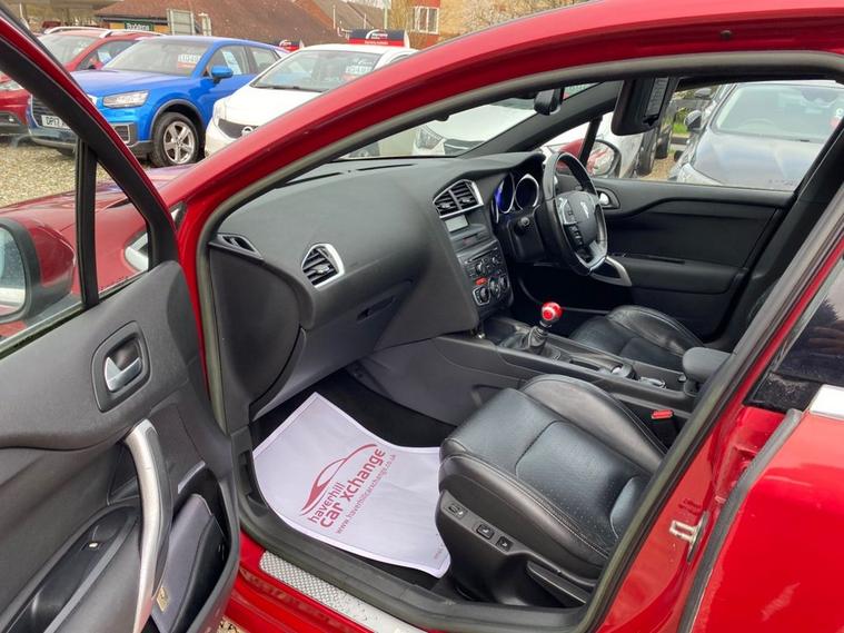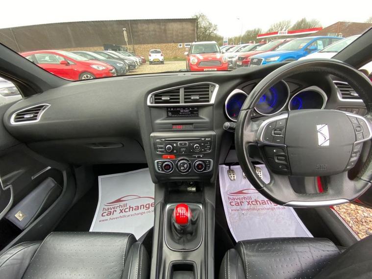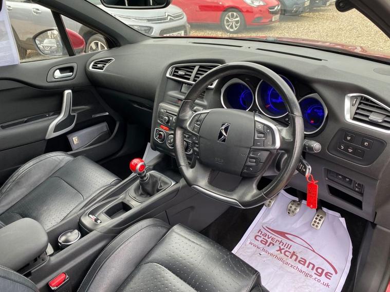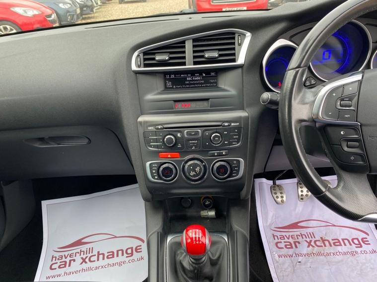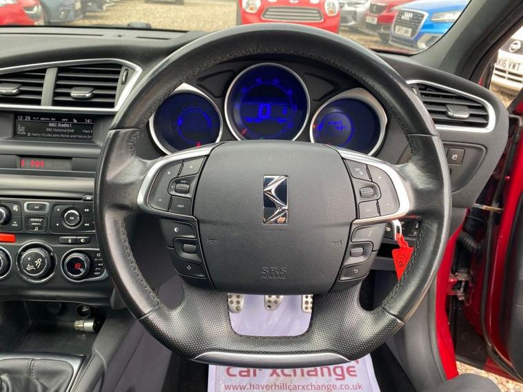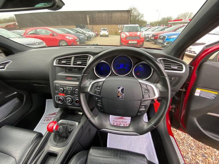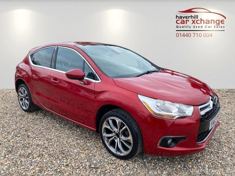 ONLY £35 A YEAR ROAD TAX+THIS VEHICLE WILL COME WITH A NEW 12 MONTH MOT+SERVICE HISTORY CONSISTS OF X8 SERVICES+LUXURIOUS HEATED HALF LEATHER AND CLOTH UPHOLSTERY+DAB RADIO-CD-MP3 PLAYER+BLUETOOTH SYSTEM+AUTOAMTIC HEADLIGHT ACTIVATION+RAIN-SENSING WINDSCREEN WIPERS+PARKING ASSISTANCE+BABYLON RED PAINT18 INCH ALLOY WHEELS. At Haverhill Car Xchange we would like to offer you our Citroen DS4 Airdream DStyle Hatchback which has been finished in a metallic Babylon Red paint with luxurious HEATED Black Sao half leather and cloth upholstery. Specification Includes DAB Radio-CD-MP3 Player, Bluetooth System, USB Socket, Auxiliary Socket, 12 Volt Power Socket, Dual Zone Automatic Climate Control Air-Conditioning, Cruise Control with Speed Limiter and Memory Settings, Gear Efficiency Indicator, Front Electric Windows with One-Touch Operation and Anti Pinch, Body Coloured Bumpers/Door Handles/Rear Roof Spoiler and Door Mirrors with Kerb Lighting, Chrome Lower Front Grille, Panoramic Windscreen, Automatic Halogen Headlight Activation, Guide Me Home Headlights, Front Fog Lights with Cornering Function, High Level Third Break Light, Auto Dimming Rear-View Mirror, Rain-Sensing Windscreen Wipers, Parking Assistance, Leather Multifunction Steering Wheel, 18 Inch Alloy Wheels, Variable Power Assisted Steering, Hill Start Assist, ABS Breaking System, Child Lock on Rear Doors, Airbags, Alarm, Immobiliser, Remote Central Locking and ISOFIX Anchorage Points for Child Seats.