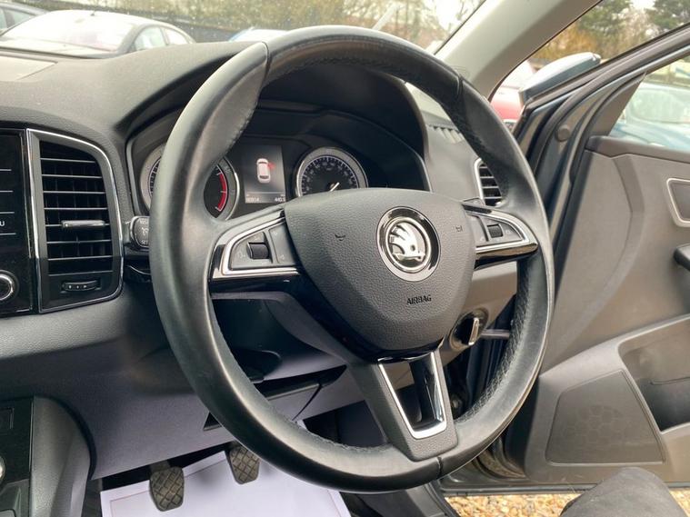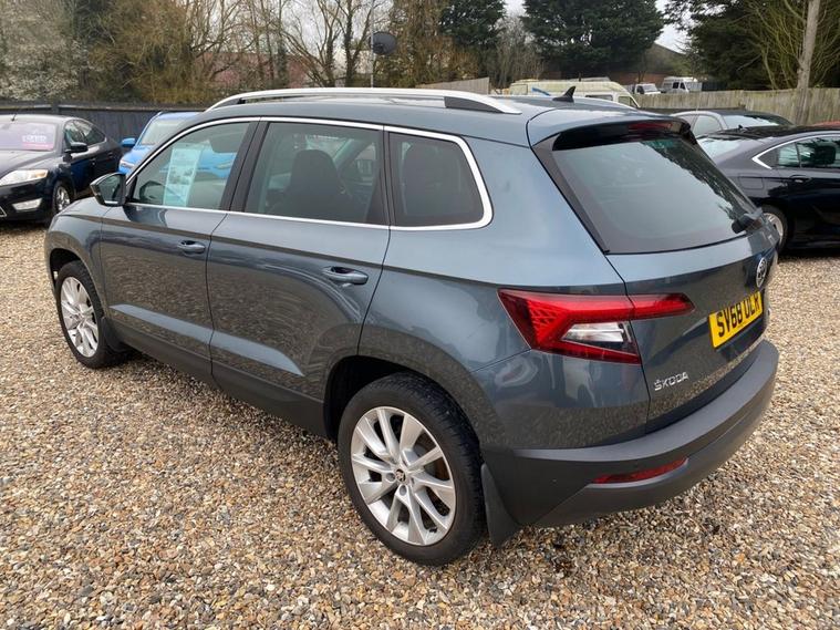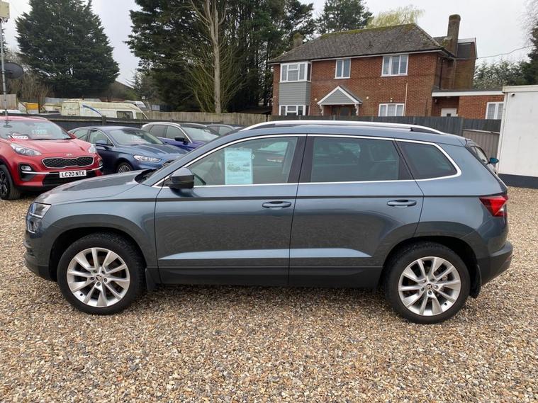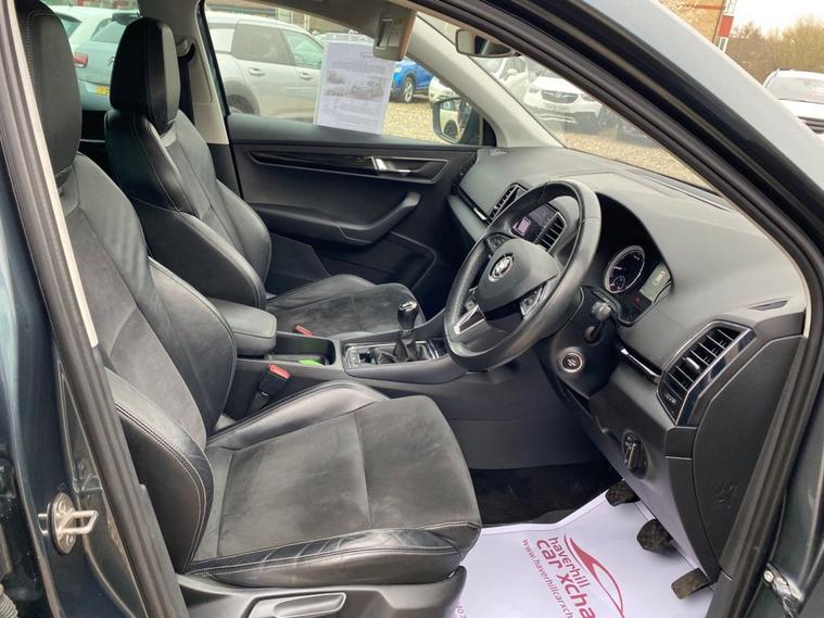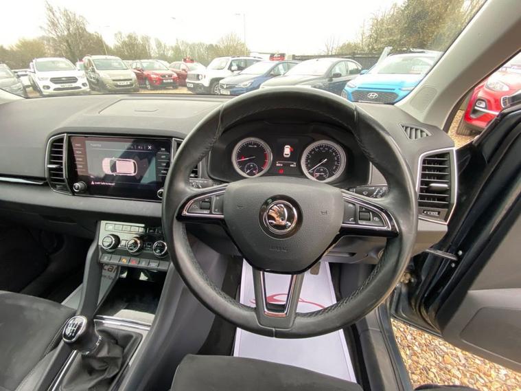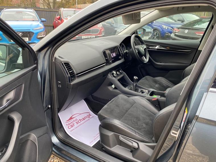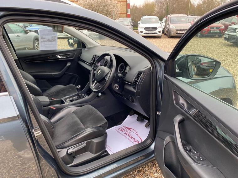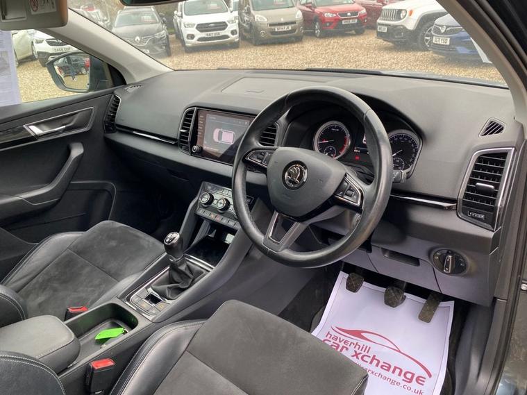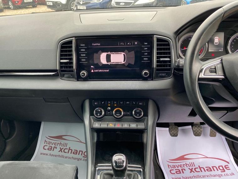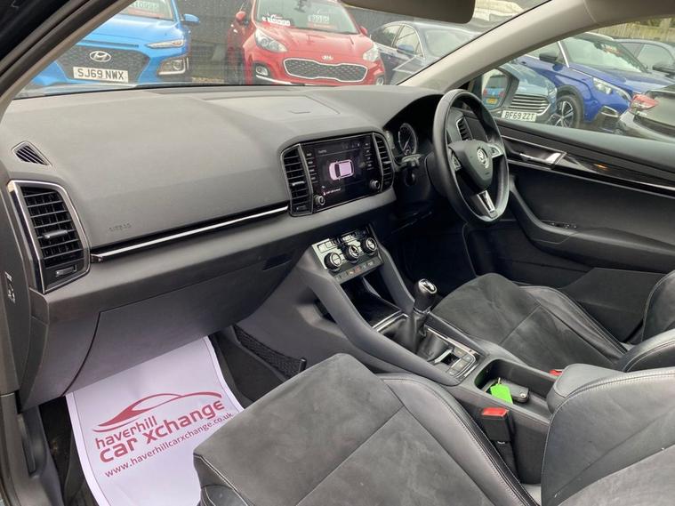 ONE OWNER+8 INCH TOUCHSCREEN SATELLITE NAVIGATION SYSTEM+DAB DIGITAL RADIO+BLUETOOTH+DUAL ZONE CLIMATE CONTROL AIR-CONDITIONING+CRUISE CONTROL+LUXURIOUS HEATED SEATS + AUTOMATIC HEADLIGHT ACTIVATION+RAIN-SENSING WINDSCREEN WIPERS+FRONT & REAR PARKING ASSISTANCE WITH PARKING CAMERA+QUARTZ GREY PAINT+18 INCH ALLOY WHEELS. At Haverhill Car Xchange we would like to offer you our ONE OWNER Skoda Karoq SE SUV which has been finished in a Quartz Grey paint with Black half leather and cloth upholstery. Excellent Specification Includes a 8 Inch Amundsen Touchscreen Satellite Navigation System, SmartLink Plus, DAB Digital Radio, Bluetooth, 12 Volt Power Socket, Dual Zone Climate Control Air-Conditioning, Drive Mode Selection, Cruise Control with Speed Limiter, Electric Front and Rear Windows with Child Proof Lock, Body Coloured Bumpers/Door Handles/Rear Roof Spoiler and Door Mirrors with Integrated Side Indicators, Automatic Headlight Activation, LED Daytime Running Lights, LED Rear Lights, LED Cornering Front Fog Lights, Third Break Light, Rain-Sensing Windscreen Wipers, Front and Rear Parking Assistance with Parking Camera, 3-Spoke Leather Multifunction Steering Wheel, Electric Parking Brake with Auto Hold Function, Privacy Glass, Heated Rear Window, Power Steering, Driver Fatigue Sensor, Airbags, Alarm, Immobiliser, Remote Central Locking and ISOFIX Anchorage Points for Child Seats.