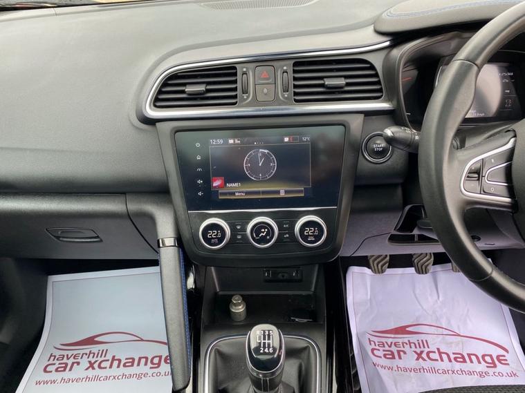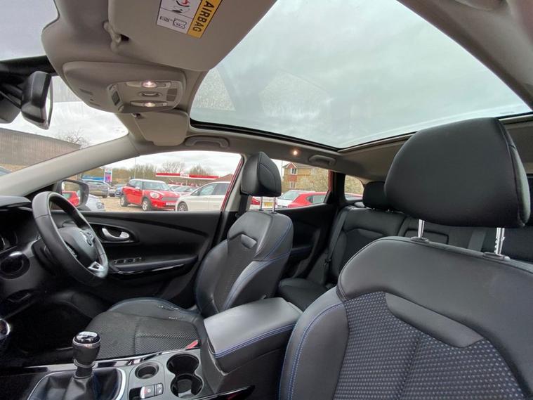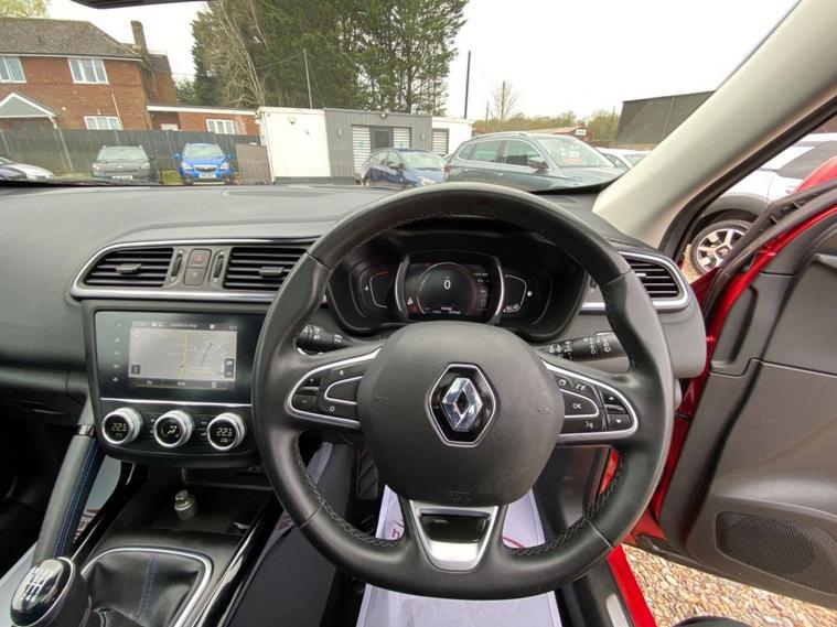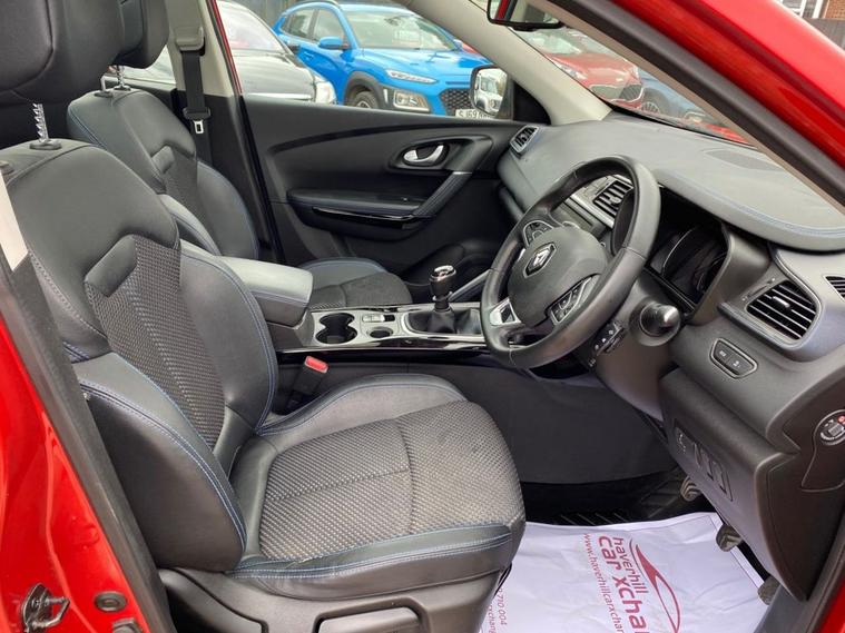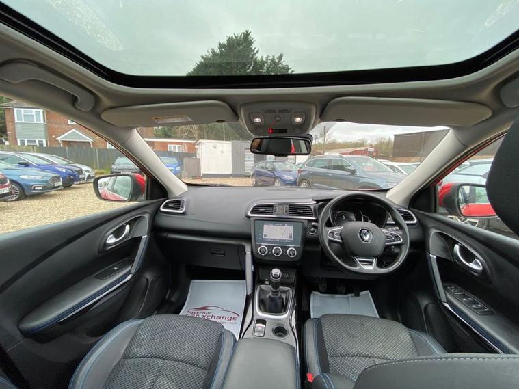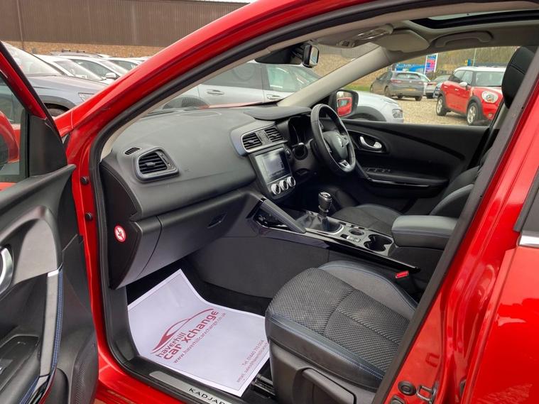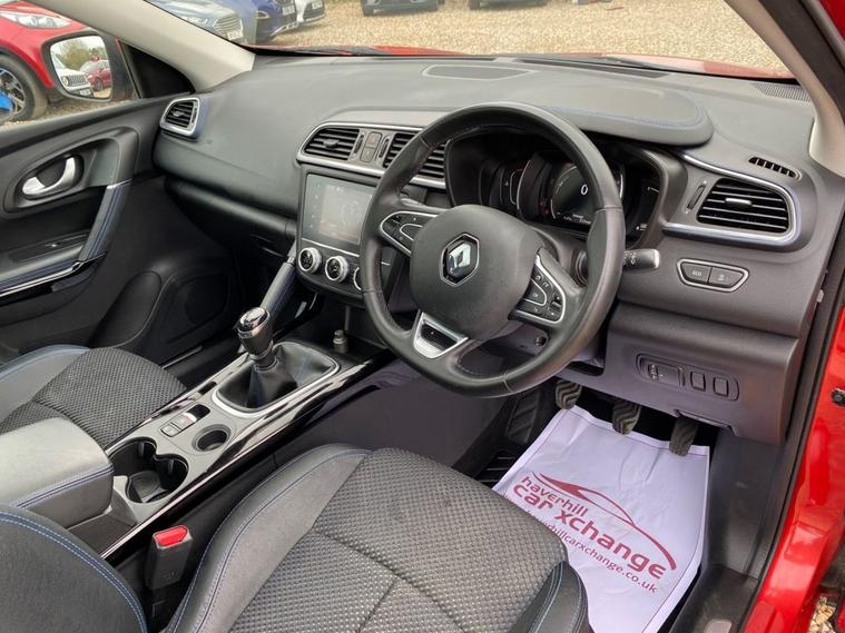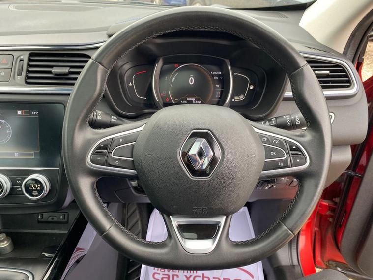 7 INCH TOUCHSCREEN WHICH FEATURES AN R-LINK MULTIMEDIA SYSTEM+DAB RADIO+AUTOMATIC DUAL ZINE CLIMATE CONTROL AIR-CONDITIONING+LANE KEEP ASSIST+AUTOMATIC HEADLIGHT ACTIVATION+RAIN-SENSING WINDSCREEN WIPERS+PANORAMIC GLASS ROOF+FRONT AND REAR PARKING ASSISTANCE WITH PARKING CAMERAS+FLAME RED PAINT+19 INCH ALLOY WHEELS. At Haverhill Car Xchange we would like to offer you our Renault Kadjar S Edition SUV which has been finished in a Flame Red paint with Black Cloth Upholstery. Excellent Specification Includes an 7 Inch R-Link 2 Multimedia System, DAB Radio- Apple CarPlay/Android Auto. Two Rear USB Sockets, Accessory Power Socket, Lane Departure Warning, Automatic Dual Zone Air-Conditioning, Cruise Control with Speed Limiter, Gear Change Indicator, Eco Mode, Front and Rear Electric Windows, Body Coloured Bumpers/Door Handles/Rear Roof Spoiler and Door Mirrors with Integrated Side Indicators, Satin Grey Front and Rear Side Skirts, Roof Rails, Automatic Headlight Activation, LED Daytime Running Lights, LED Tail Lights, LED Front Fog Lights with Cornering Lights, Rain-Sensing Windscreen Wipers, Front and Rear Parking Assistance with Parking Cameras, Multifunction Steering Wheel, Panoramic Glass Roof, Heated Rear Window, 19 Inch Alloy Wheels, Power Assisted Steering, Hill Start Assist, ABS Breaking System, Airbags, Alarm, Immobiliser, Remote Central Locking and ISOFIX Anchorage Points for Child Seats.