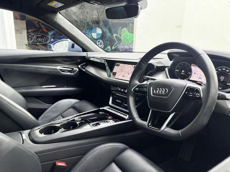 MORE IMAGES TO FOLLOW......... Discover the 2024 Audi e-tron GT Vorsprung, a remarkable electric vehicle offering an impressive 305 miles of range on a full charge. This Four Wheel Drive model boasts a substantial 93 kWh battery, ensuring a powerful and efficient driving experience. Charging at home with a 7kW charger will take approximately 14 hours, while rapid public charging can replenish the battery from empty to 80% in just 24 minutes. The Vorsprung trim level comes equipped with a host of premium features designed for comfort and convenience. Enjoy the benefits of Automatic 3-Zone Climate Control, Keyless-Go with motion activated boot opening, and the Technology Pack Pro, which includes a Head Up Display, LED and Laser headlights, and a luxury branded sound system. Further enhancing the driving experience are the heated three-spoke flat bottom steering wheel and the MMI Navigation Plus with MMI Touch and Bluetooth connectivity. These advanced features collectively elevate the e-tron GT Vorsprung above other vehicles in its class, offering a sophisticated and connected journey.