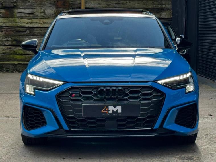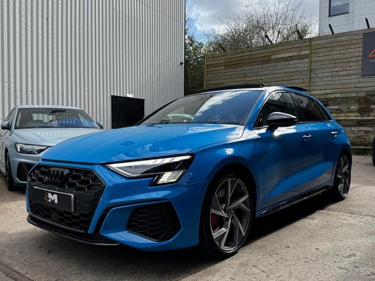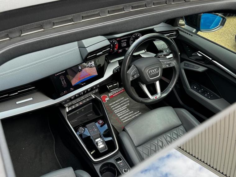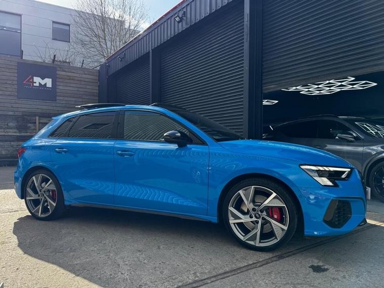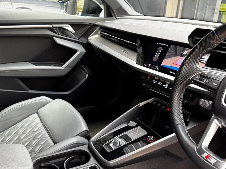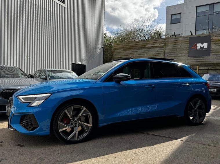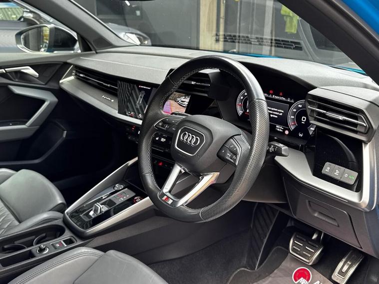 This 2023 Audi S3 TFSI Vorsprung boasts a full dealership service history and a clear vehicle history check, offering you complete peace of mind. This impressive model features a powerful 2.0 litre petrol engine paired with a four wheel drive drivetrain, ensuring dynamic performance. It meets Euro 6 emission standards and comes with a remaining 15 months of warranty. The Vorsprung trim level includes desirable features such as 19 inch alloy wheels in a stylish matt grey with diamond turned finish, the Audi Smartphone Interface for seamless connectivity with Apple CarPlay, and dual zone electronic climate control for personalised comfort. Experience exhilarating acceleration with this Audi S3, capable of reaching 0 to 60 miles per hour in just 4.8 seconds, a performance that sets it apart from many other vehicles in its class. The Technology Pack Pro further enhances your driving experience with advanced LED headlights, keyless entry for effortless access, and a panoramic opening sunroof that floods the cabin with light. Enjoy premium sound from the branded sound system, heated seats for those colder journeys, and the convenience of wireless phone charging. Parking is made simpler with front and rear sensors, a rear camera, and advanced parking assistance, all contributing to a superior driving experience.