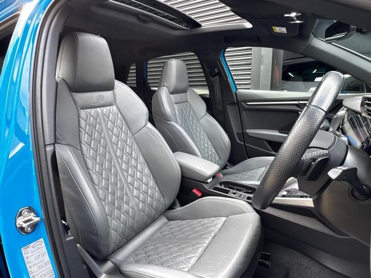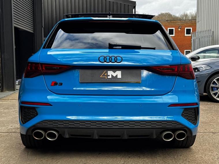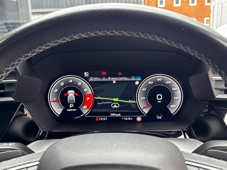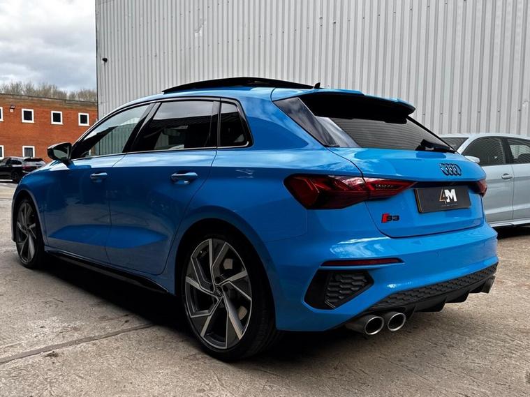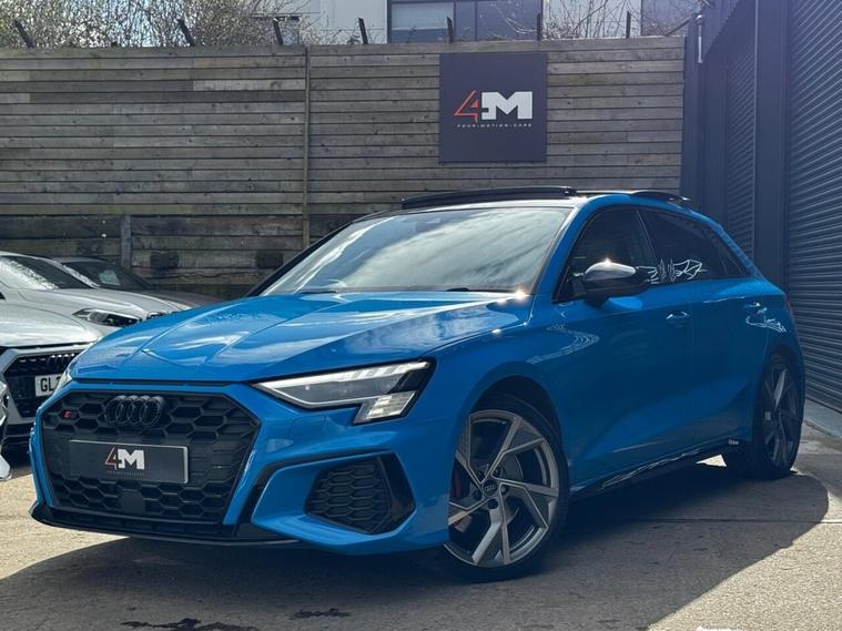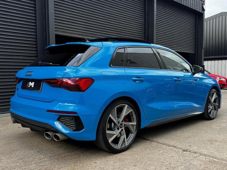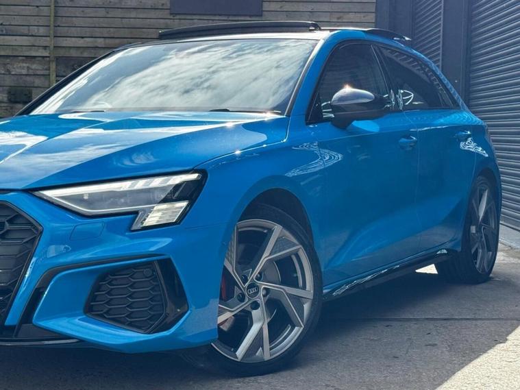 This 2023 Audi S3 TFSI Vorsprung boasts a full dealership service history and a clear vehicle history check, offering you complete peace of mind. This impressive model features a powerful 2.0 litre petrol engine paired with a four wheel drive drivetrain, ensuring dynamic performance. It meets Euro 6 emission standards and comes with a remaining 15 months of warranty. The Vorsprung trim level includes desirable features such as 19 inch alloy wheels in a stylish matt grey with diamond turned finish, the Audi Smartphone Interface for seamless connectivity with Apple CarPlay, and dual zone electronic climate control for personalised comfort. Experience exhilarating acceleration with this Audi S3, capable of reaching 0 to 60 miles per hour in just 4.8 seconds, a performance that sets it apart from many other vehicles in its class. The Technology Pack Pro further enhances your driving experience with advanced LED headlights, keyless entry for effortless access, and a panoramic opening sunroof that floods the cabin with light. Enjoy premium sound from the branded sound system, heated seats for those colder journeys, and the convenience of wireless phone charging. Parking is made simpler with front and rear sensors, a rear camera, and advanced parking assistance, all contributing to a superior driving experience.