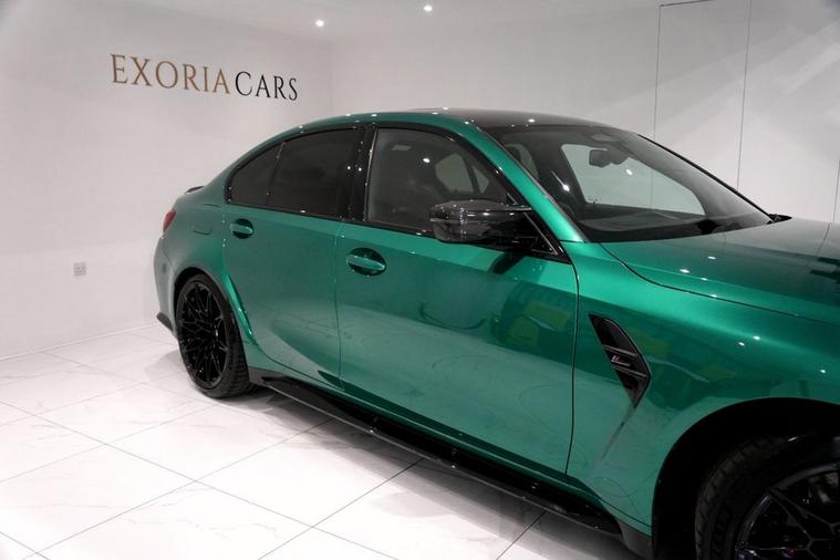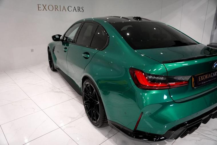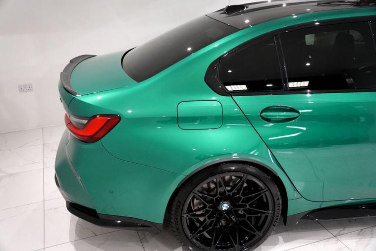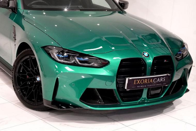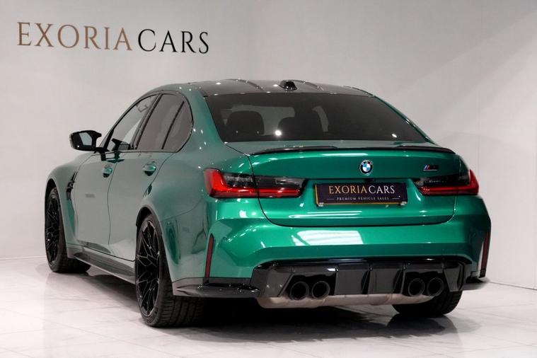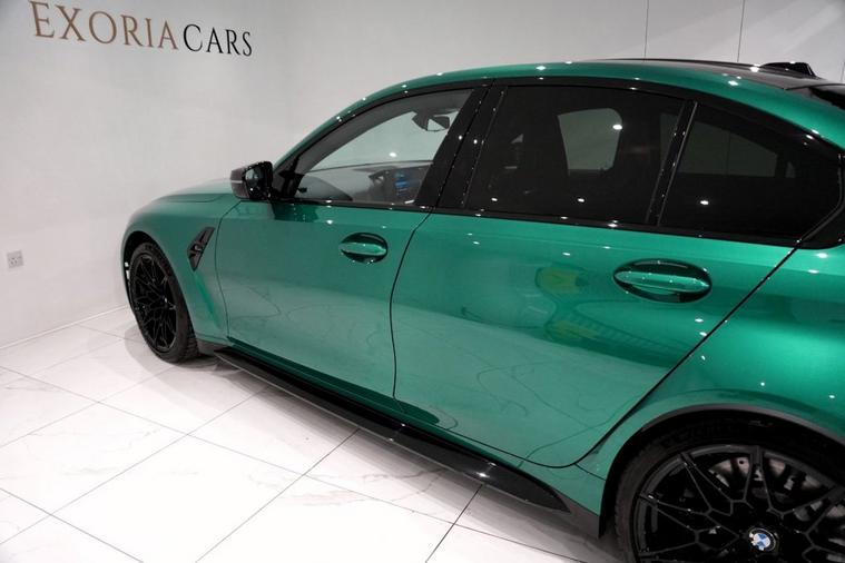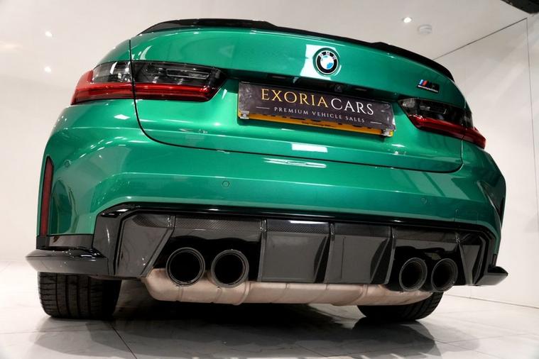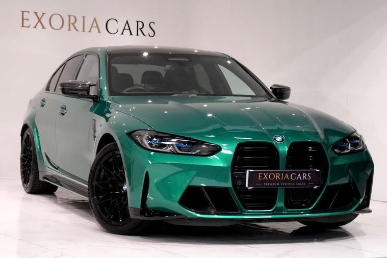 Exoria Cars are pleased to offer this BMW M3 3.0 BiTurbo Competition Saloon 4dr Petrol Steptronic M xDrive Euro 6 (s/s) (510 ps) registered in 16/06/2023. This particular model is presented in Isle of Man Green. This vehicle has many optional spec extras. These include (but are not limited to) Ultimate Package, M Carbon Exterior Package, M Carbon Bucket Seats, Full Merino Leather - Black, Laser Lights, Adaptive Cruise Control, Heads Up Display, Blind Spot Assist, Harmon Kardon Surround Sound System, Interior Carbon, Parking Assistant Plus, Electric Folding Mirrors, active safety features and much more. FULL BMW SERVICE HISTORY (1 Owner from new, initially registered to BMW). For full details please do enquire via email or phone or visit our website dealer's website This vehicle comes with 2 keys, a full (clear) HPI check and BMW Warranty until 16/06/2023. AA CARS APPROVED DEALER. All of our vehicles are thoroughly inspected before sale ensuring peace of mind to all customers of Exoria Cars. All 5* reviews on all platforms giving you peace of mind with your new purchase! AA Checks/RAC Checks are welcome! Any used car purchase also qualifies for a free interior and exterior deep clean detail worth £400 with our partnered company DD Detailing who are one of the largest detailing companies in the UK. This vehicle is ready to drive away today! PCP and HP finance available from 8.9% APR (subject to status)