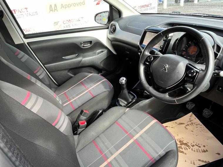 The Peugeot 108 Allure is a stylish and economical city hatchback thats cheap to own and easy to drive. Powered by the punchy yet efficient 1.2 PureTech petrol engine producing 82ps, it delivers up to around 65mpg combined with low CO? emissions of just 99g/km, helping keep fuel and road tax costs low. The high-spec Allure trim includes a 7-inch touchscreen with Bluetooth connectivity, reversing camera, keyless entry, air conditioning and alloy wheels. Compact outside but practical inside, the 5-door layout offers easy access and a useful boot with folding rear seats, making it a great choice for city driving and everyday use. With under 54, 000 miles, this example represents a low-mileage, economical and well-equipped small hatchback.
