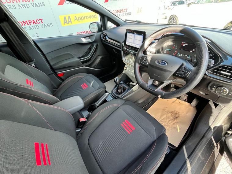 The Ford Fiesta ST-Line Edition combines sporty styling with impressive efficiency. Powered by the 1.0 EcoBoost mild-hybrid engine producing 125ps, it offers strong performance while returning up to around 57mpg combined, helping keep fuel costs low alongside relatively modest CO? emissions of about 115g/km. ST-Line Edition models come well equipped with 17-inch alloy wheels, sports-style interior, Ford SYNC 3 touchscreen with satellite navigation, Apple CarPlay/Android Auto, cruise control, rear parking sensors and selectable drive modes. With under 33, 000 miles, this 73-plate example offers modern technology, strong performance and low running costs in a stylish and practical 5-door hatchback.