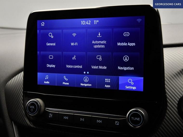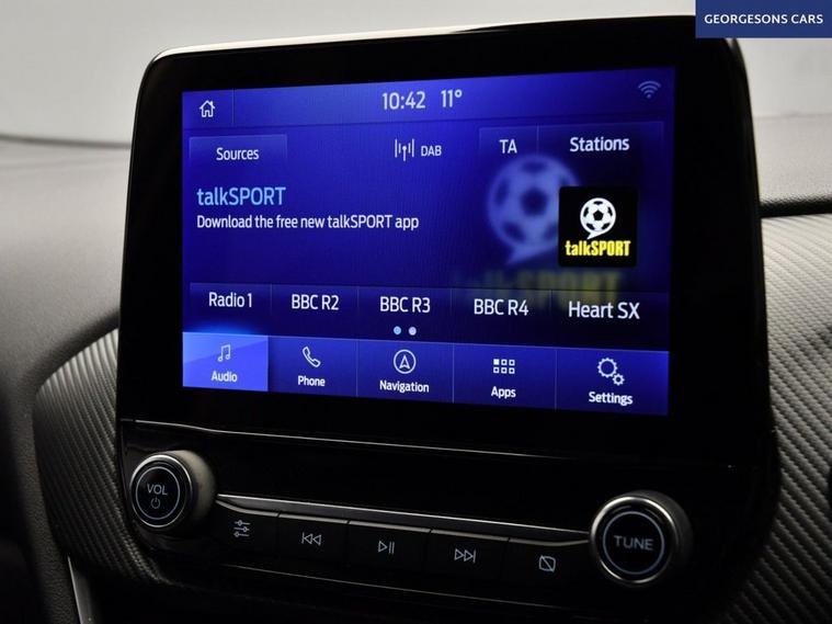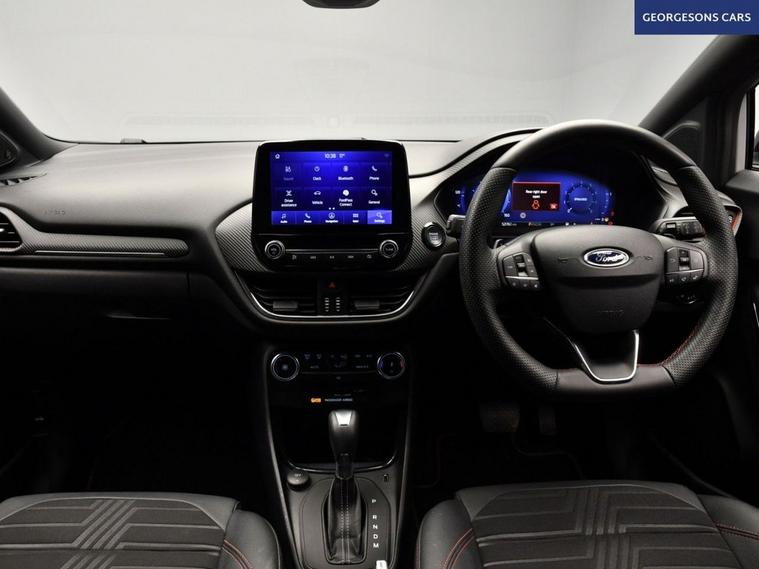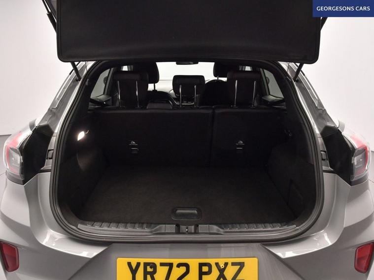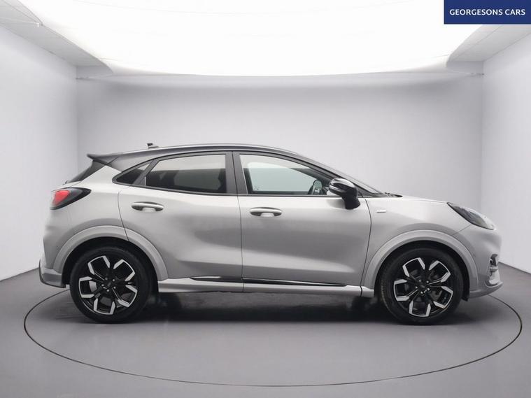 The Ford Puma 1.0T EcoBoost MHEV ST-Line X combines a responsive 1.0-litre turbo mild-hybrid petrol engine with 155hp, delivering 0-62mph in 8.7 seconds and up to 52.3mpg in this front-wheel-drive setup with a smooth 7-speed DCT automatic transmission. The flagship ST-Line X trim elevates the sporty appeal with ggressive bodykit, lowered suspension and a premium interior for engaging compact SUV driving. With one owner, this Puma is in excellent condition. Immerse yourself in premium audio with the B&O sound system, while integrated satellite navigation, Apple CarPlay, Bluetooth and DAB radio ensure seamless connectivity on every journey. Parking is effortless thanks to the reverse camera, parking sensors and park assist, providing comprehensive visibility and confidence in tight spaces. Stay comfortable with climate control, offering personalised cooling year-round. Cruise control with speed limiter enhances relaxation on highways. The stylish five-door SUV design includes a 456-litre MegaBox boot for outstanding practicality