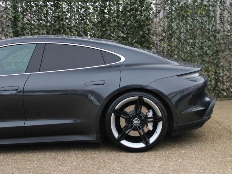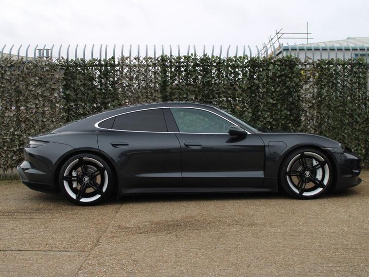 **91.9% BATTERY HEALTH** This 2022 Porsche Taycan Performance Plus 4S is a superb example, having had only one owner since new. As an all electric vehicle, it offers a compelling blend of performance and advanced technology. This four wheel drive model boasts a substantial 93 kWh battery, providing a maximum range of up to 318 miles when new. Charging is convenient, with a full charge at home taking approximately 13 hours and 30 minutes using a 7kW charger, while rapid public charging can replenish the battery from empty to 80% in as little as 24 minutes. The Taycan 4S is equipped with striking 21 inch Mission E Design alloy wheels and Porsche Surface Coated Brakes with white calipers, adding to its distinctive appearance. Inside, youll find a luxurious two tone interior finished in smooth black and chalk beige leather. Connectivity is seamless with Porsche Connect and Apple CarPlay, and the centre console includes a wireless phone charging compartment. This Taycan truly excels with its impressive acceleration, reaching 0 to 60mph in just 4.0 seconds, demonstrating its superior performance capabilities compared to other vehicles in its class.