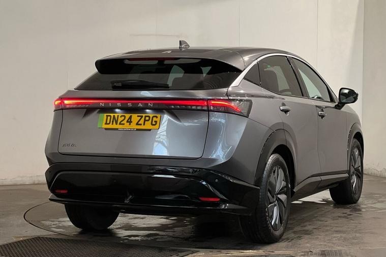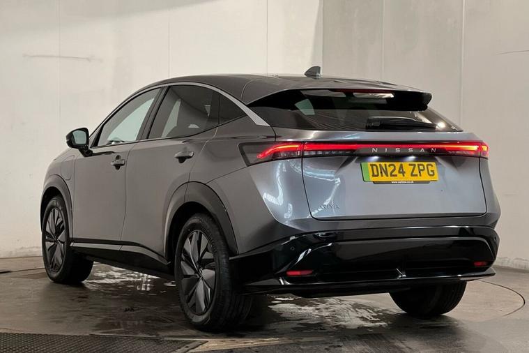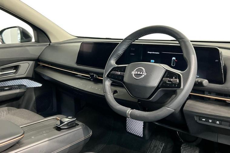 This 2024 Nissan ARIYA Advance is a superb example, having had only one owner from new and boasting a clear vehicle history check. As an electric vehicle, it offers a battery total capacity of 66 kWh, providing a maximum range of 250 miles when new. Charging at home using a 7kW charger will take approximately 11 hours and 6 minutes for a full charge, while rapid public charging can replenish the battery from empty to 80% in just 34 minutes. This Advance trim level comes equipped with striking LED headlights that automatically adjust to lighting conditions, enhancing visibility. The ARIYA Advance also features Blind Spot Intervention to help you navigate traffic safely, and the Comfort Pack ensures a pleasant driving experience with heated seats and a heated steering wheel. Stay connected and entertained with Wireless Apple CarPlay and Cabled Android Auto, all managed through the intuitive infotainment system. Enjoy a consistently comfortable cabin environment thanks to the Automatic Dual Zone Climate Control. These features collectively demonstrate how this Nissan ARIYA Advance offers a refined and convenient electric driving experience, setting it apart from other vehicles in its class.