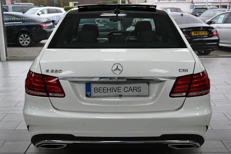 DRIVE AWAY TODAY OR HOME DELIVERY TO YOUR DOORSTEP FINANCE & PART EXCHANGE ARRANGED ONLINE** 7 DAY MONEY BACK GUARANTEE** Lovely rare car & drive Mercedes E220 cdi amg sport in metallic white with full service history sat nav cd dab radio bluetooth usb panoramic roof leather seats with armrest heated seats electric seats electric folding door mirrors front and rear parking aid sensors xenon lights flat bottom steering wheel with f1 style paddleshifts eco button alloys privacy