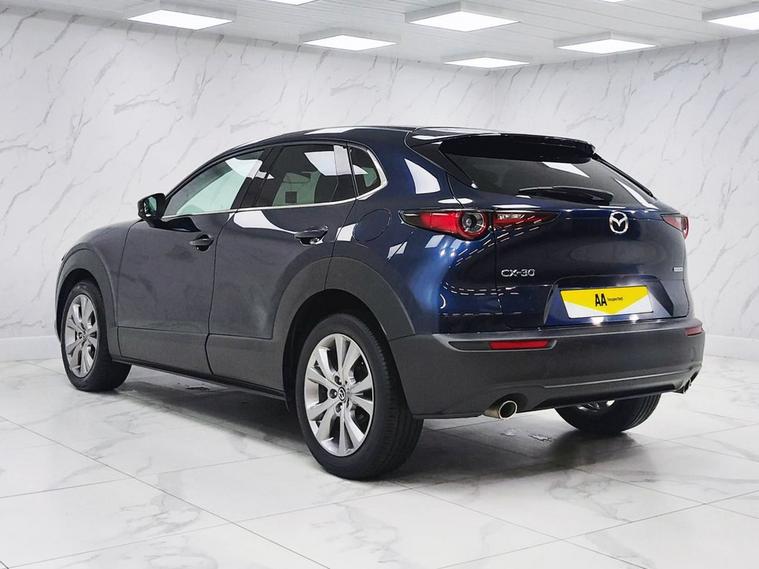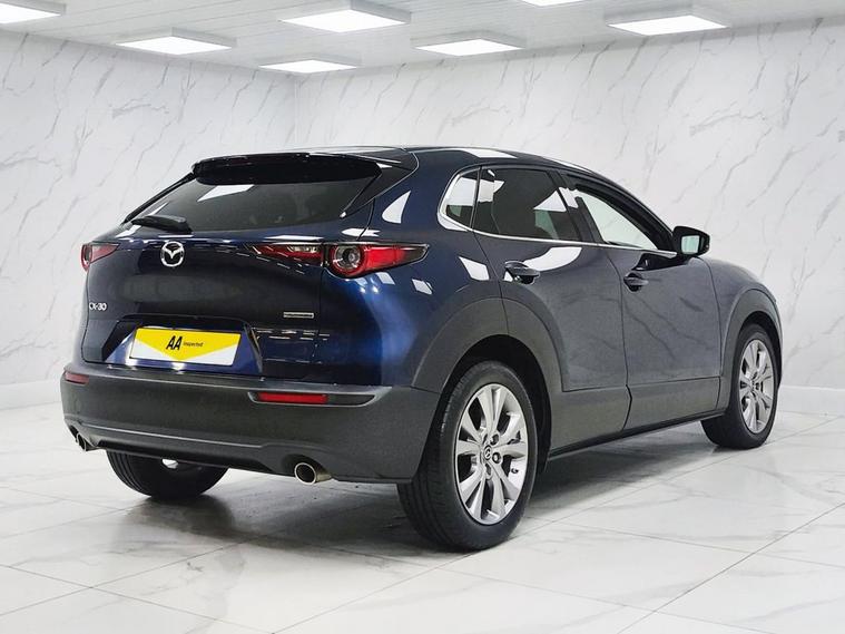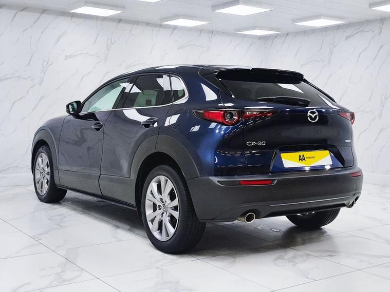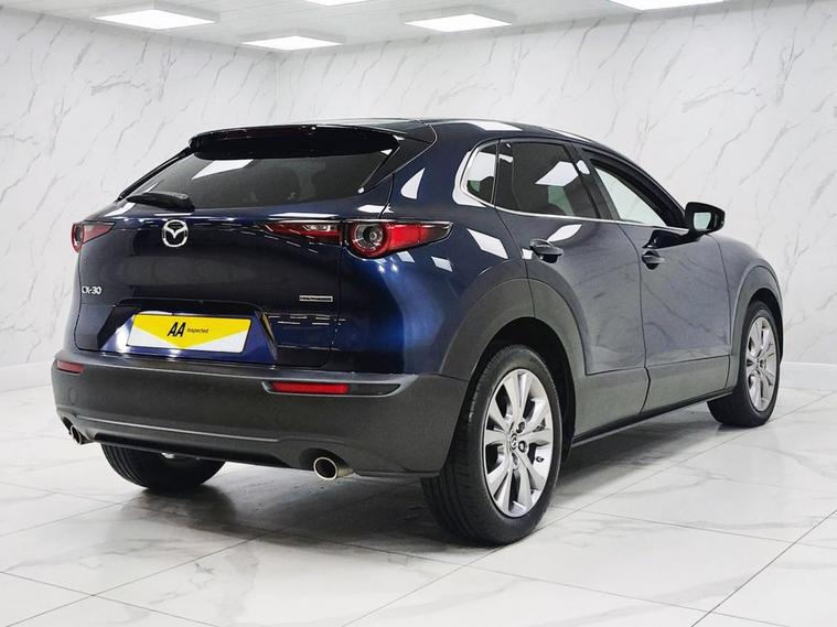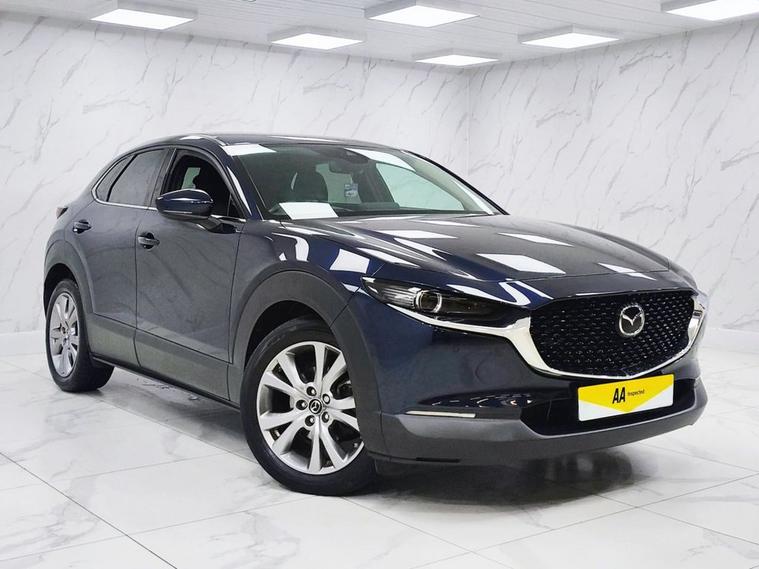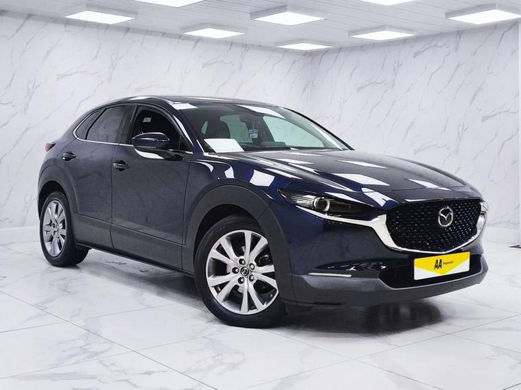 This 2020 Mazda CX-30 SKYACTIV-G Sport Lux presents an exceptional opportunity with remarkably low mileage for its age, having covered just 30, 000 miles. This Euro 6 compliant model boasts a 2.0 litre petrol engine and comes with a full 12 months MOT for your peace of mind. Inside, youll find a wealth of technology designed to enhance your driving experience, including front and rear parking sensors with parking assistance, adaptive LED headlights that are also dusk sensing, and a windscreen projected colour active driving display with traffic sign recognition. The integrated Bluetooth system ensures seamless connectivity on the go. The Mazda CX-30 SKYtriangleq-G Sport Lux stands out with its impressive fuel economy, achieving up to 46 miles per gallon, and its low CO2 emissions, indicating a more environmentally conscious choice compared to many other vehicles. Furthermore, its placement in a low insurance group suggests that running costs will be more affordable. These highlights collectively demonstrate how this particular CX-30 offers a superior ownership proposition.