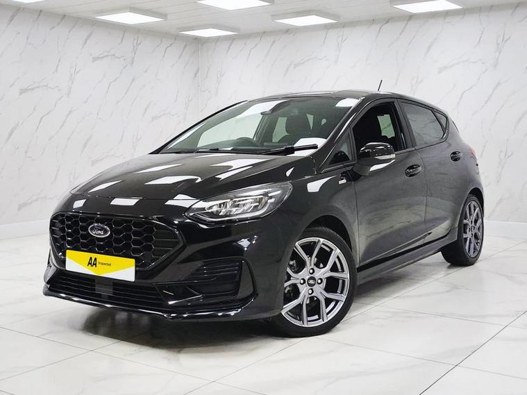 This 2023 Ford Fiesta ST-Line Edition offers peace of mind with a clear vehicle history check and a 12 month MOT provided on purchase. This stylish hatchback is equipped with a responsive 1.0L petrol engine and meets Euro 6 emissions standards. Inside, youll find manual air conditioning for your comfort, and the Ford Navigation System with Ford SYNC 3, which seamlessly integrates with Apple CarPlay and Android Auto, keeping you connected and on track. The ST-Line Edition also benefits from automatic LED projector headlights with daytime running lights and rear parking distance sensors, making every journey easier. The inclusion of LED projector headlights with daytime running lights and automatic headlights signifies a higher level of visibility and convenience compared to many other vehicles. Furthermore, the integration of Apple CarPlay and Android Auto through the Ford SYNC 3 system, alongside the Ford Navigation System and FordPass Connect, demonstrates a more advanced and connected driving experience. These features, combined with the practical rear parking distance sensors and the efficient 1.0L petrol engine, make this 2023 Ford Fiesta ST-Line Edition a well equipped and appealing choice.