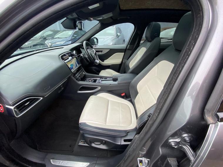 This 2018 Jaguar F-PACE D180 R-Sport boasts a full service history and a clear vehicle history check, offering peace of mind for its next owner. This Four Wheel Drive model features a 2.0L Diesel Engine, meeting Euro 6 emissions standards, and is capable of towing up to 2400 kg. The R-Sport trim enhances its appeal with Xenon Headlights featuring LED signatures, 2-Zone Climate Control for personalised comfort, and Front and Rear Parking Aid to assist with manoeuvring. Stay connected on the go with Bluetooth Connectivity, and enjoy the comfort of Heated Front Seats. Experience the dynamic performance of this F-PACE, accelerating from 0-60mph in just 8.4 seconds. These performance figures demonstrate its capability compared to other vehicles in its class. The combination of its robust drivetrain, refined interior features, and Jaguars renowned styling makes this F-PACE D180 R-Sport a compelling choice for those seeking a blend of luxury, practicality, and driving enjoyment.