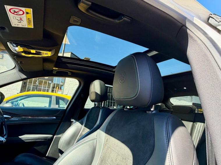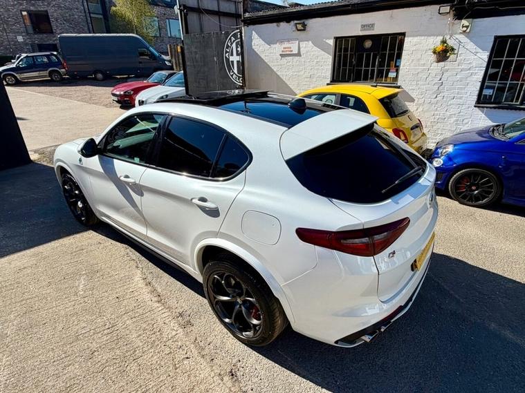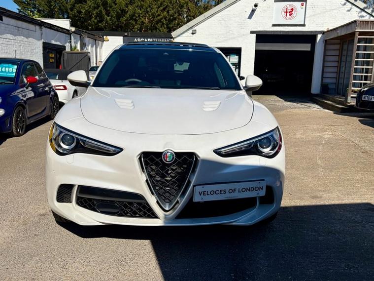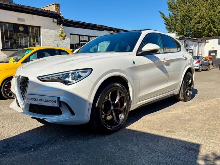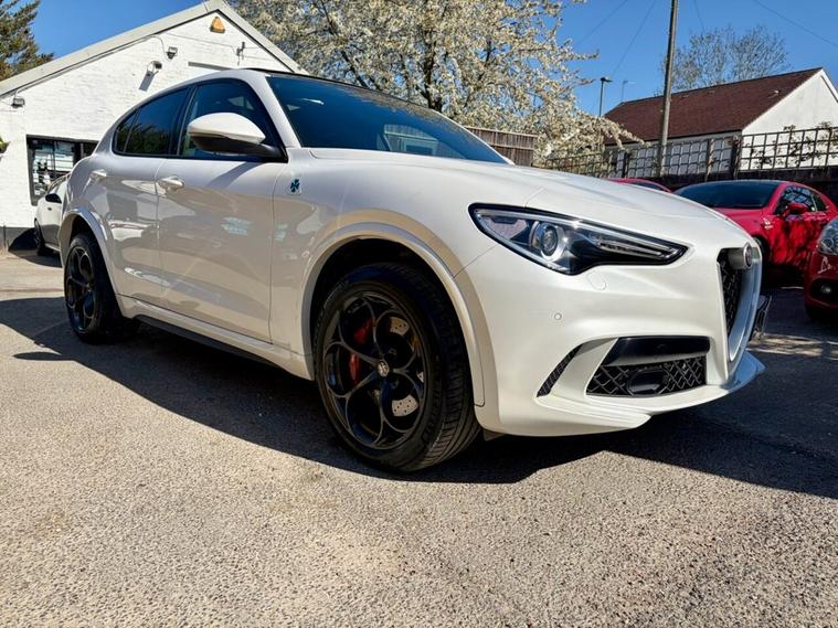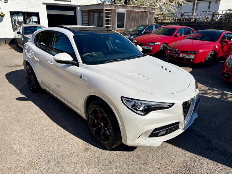 Veloces are very pleased to be able to offer for sale this Very Low Mileage Stelvio QV.. Finished is Special Pearl Trofeo White (£1950 Paint option) with Contrasting Black Sports Leather Interior..A Great Spec Car with Over £6500 of Factory Options Including:Twin Glass Panoramic Sunroofs..Red Brembo Brake Calipers, Rear Privacy Glass, Electrically Adjustable Seat Pack, Harmon Kardon Sound System Linked To Apple Car Play / Android Auto, Flat Bottomed Alcantara Sports Steering Wheel With Carbon Inserts, Privately Owned From New With Full Service History Including Major Belt Service & Tyres.. Excellent Value..510 BHP of Smiles.. Not To Be Missed..