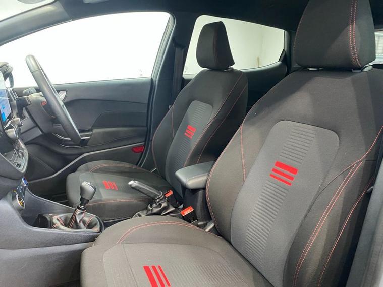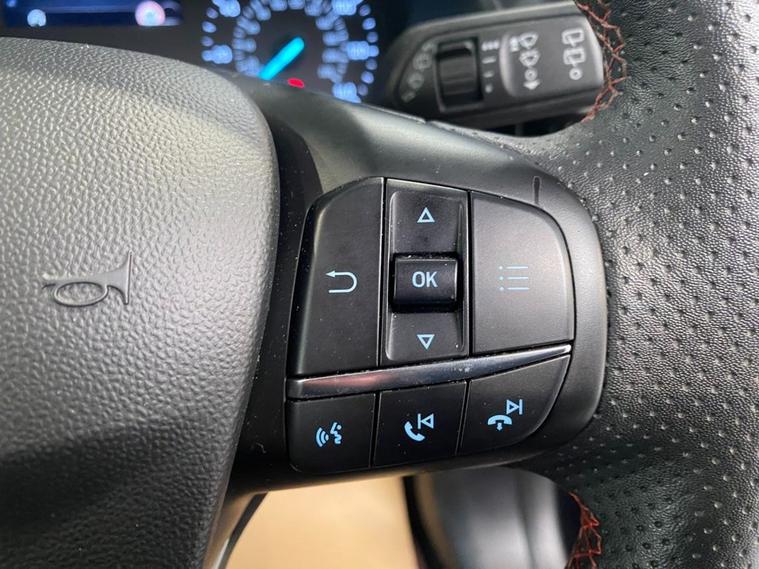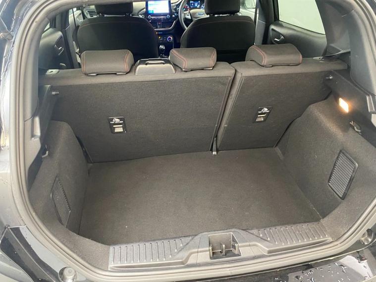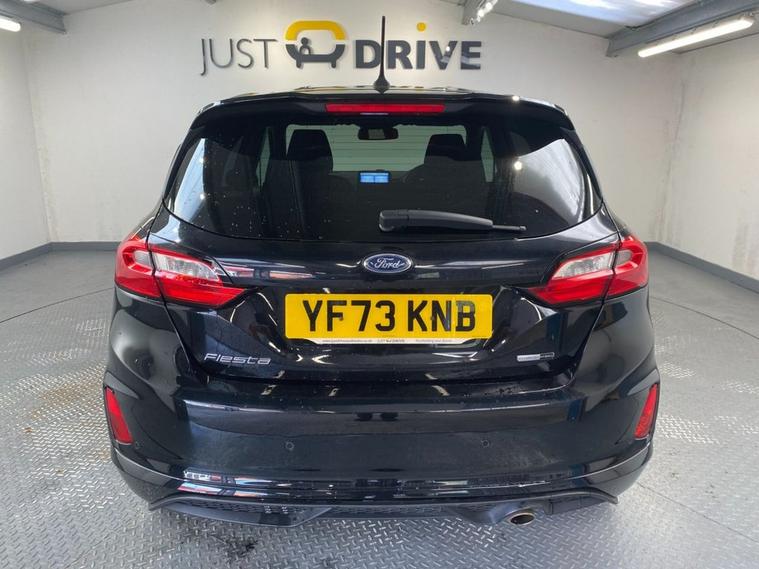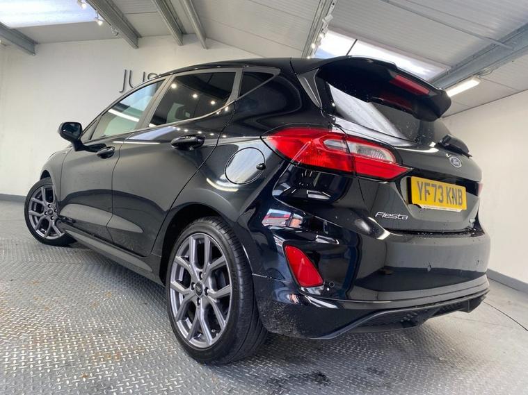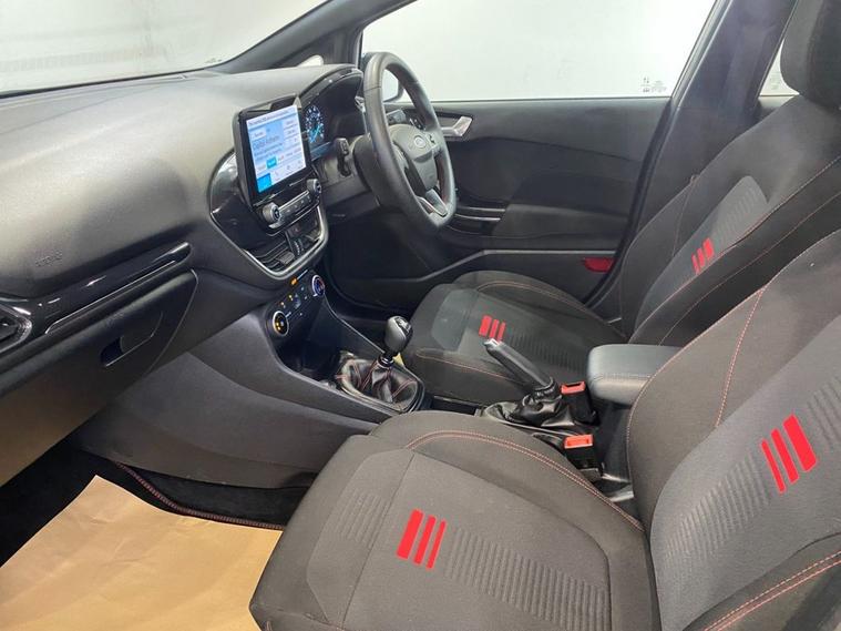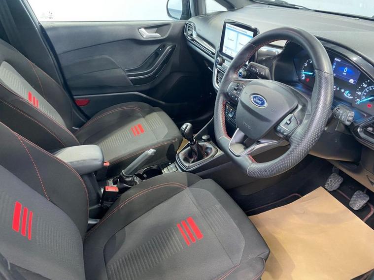 Just Drive are thrilled to offer this fantastic Fiesta ST-Line and its purposeful appearance is backed up by the superb driving experience. Its 1.0 Turbo mild-hybrid petrol engine revs smoothly to deliver peppy performance, while its sports-tuned suspension strikes a nice balance between comfort and dynamism. This is enhanced by its well-weighted, direct steering and a precise, light gearshift. Fully colour coded in Shadow Black the sporty exterior is enhanced with 17 titanium effect alloy wheels, dark tint privacy glass and sports body styling. Inside theres sport style seats in 2-tone cloth upholstery and Fords famous SYNC touchscreen media system - this includes Bluetooth connectivity for multiple devices with voice control and also supports DAB radio. The impressive level of equipment continues with cruise control, rear park sensors, air conditioning, lane departure warning and a leather multi-function sport steering wheel. The 1.0 turbo petrol engine produces a lively 123 Bhp, is ULEZ compliant and should achieve around 57 mpg on the combined cycle.