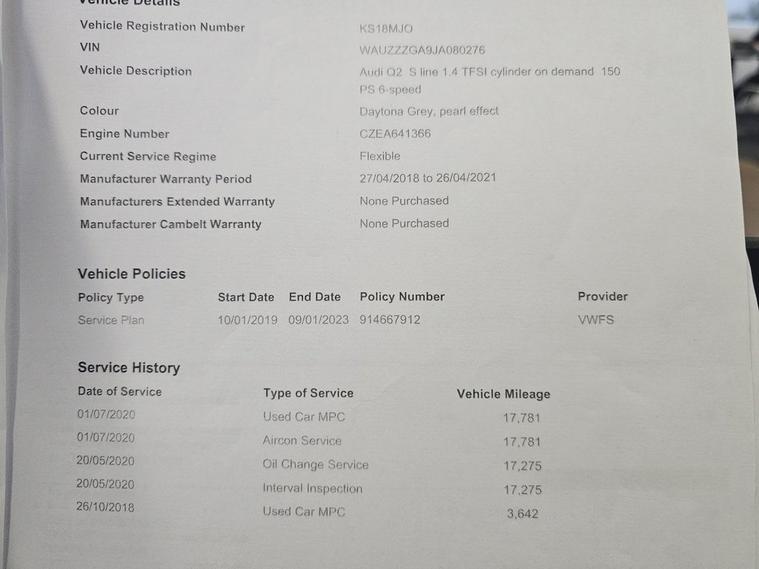 This 2018 Audi Q2 TFSI S line boasts a clear vehicle history, offering you peace of mind. This stylish compact SUV features a 1.4 litre petrol engine and meets Euro 6 emissions standards. Its S line trim enhances its sporty appeal, and youll appreciate the convenience of LED headlights with dynamic rear indicators, rear parking sensors, and an Audi Smartphone Interface that seamlessly integrates Android Auto and Apple CarPlay. The Bluetooth interface allows for easy phone connectivity, while the light and rain sensor automatically manages the headlights. Experience impressive efficiency with this Audi Q2, achieving a highlight fuel economy of 50 miles per gallon and low CO2 emissions, making it a more economical choice for your journeys. Its performance is equally noteworthy, with an acceleration of 0 to 60 miles per hour in just 8.5 seconds, demonstrating its responsiveness compared to other vehicles in its class.