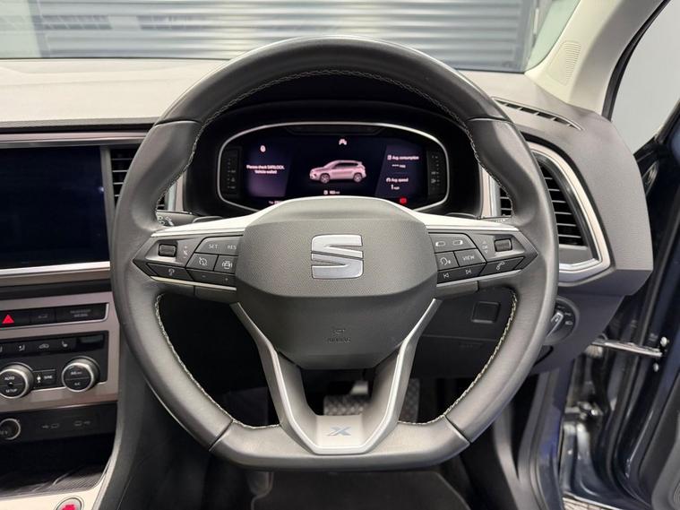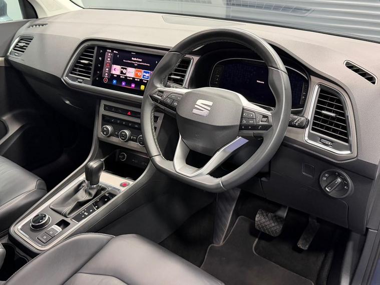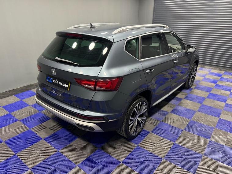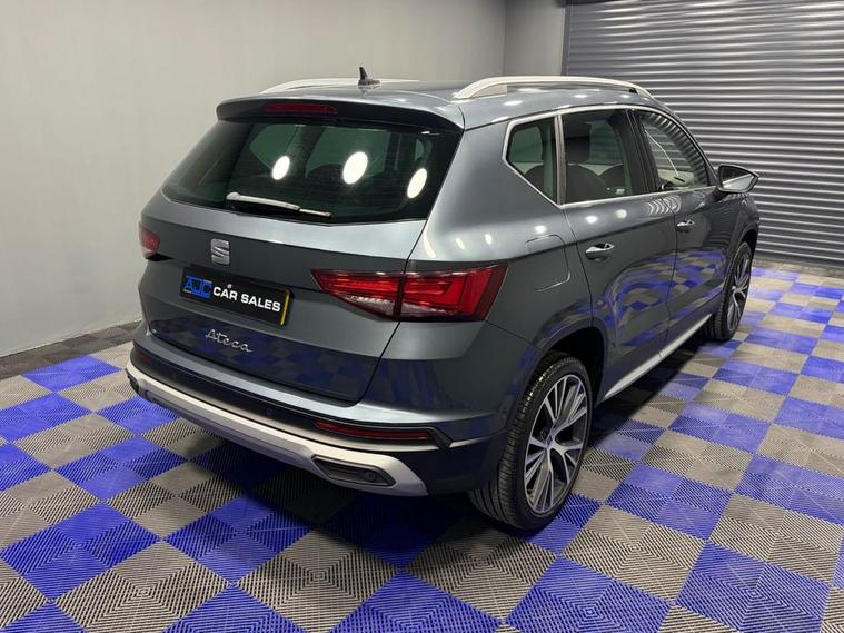 AJC Car Sales presents the SEAT ATECA 1.5 TSI EVO XPERIENCE Lux SUV 5dr Petrol DSG Euro 6 (s/s) (150 ps) finished off in Rodium Grey Metallic with 19 Diamond Cut Alloy Wheels, Two Keys and a Great Service Record. The 2021 SEAT Ateca 1.5 TSI EVO XPERIENCE Lux SUV 5dr Petrol DSG Euro 6 (s/s) (150 ps) is a refined and versatile family SUV that combines modern styling, advanced technology, and efficient performance. Powered by a responsive 1.5-litre TSI EVO turbocharged petrol engine producing 150 PS, it delivers a smooth and confident drive through a 7-speed DSG automatic transmission. Acceleration from 062 mph takes around 9 seconds, while the vehicle offers a top speed of approximately 126 mph, striking a balance between performance and everyday usability. This XPERIENCE Lux trim represents the top of the range, featuring a high level of specification and premium comfort. The interior boasts full leather upholstery, heated front seats and steering wheel, dual-zone climate control, and a 10-inch digital cockpit, creating a modern and driver-focused environment. Practicality is a strong point, with five doors, spacious seating for five, and a generous 510-litre boot capacity, making it ideal for families or long journeys. Technology and convenience are central to the Atecas appeal, with features such as wireless smartphone integration (Apple CarPlay and Android Auto), navigation, and a full suite of driver assistance systems. These include a top-view camera, self-parking functionality, adaptive driving modes, and front and rear parking sensors, ensuring both safety and ease of use in all driving conditions. Externally, the Ateca presents a confident SUV stance with 19-inch alloy wheels, full LED headlights, chrome detailing, and roof rails, while its Euro 6-compliant engine and start/stop system help deliver efficiency, with combined fuel economy of around 42 mpg (WLTP). Overall, this model offers a premium SUV experience with strong performance, advanced technology, and everyday practicalitymaking it an excellent choice for drivers seeking comfort, capability, and style in a well-rounded package.