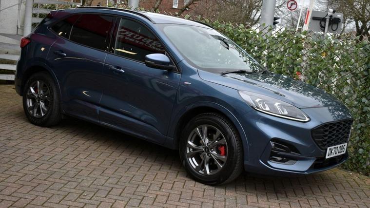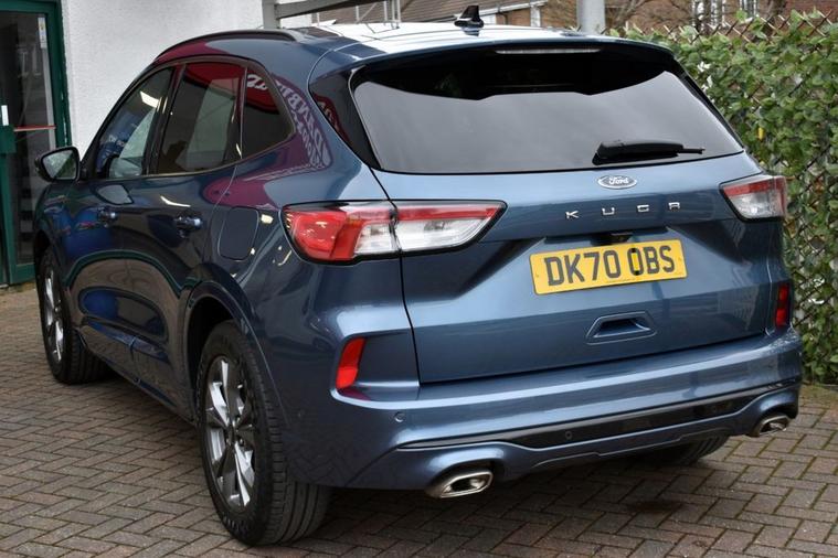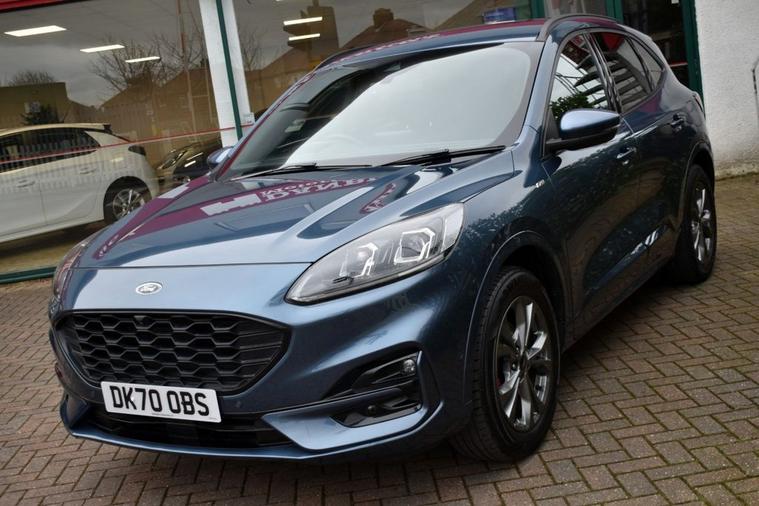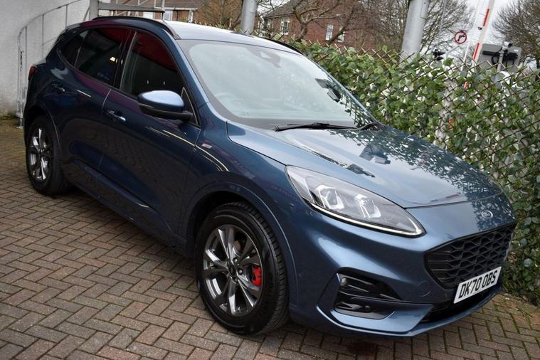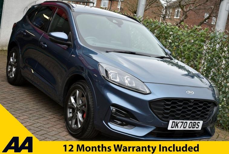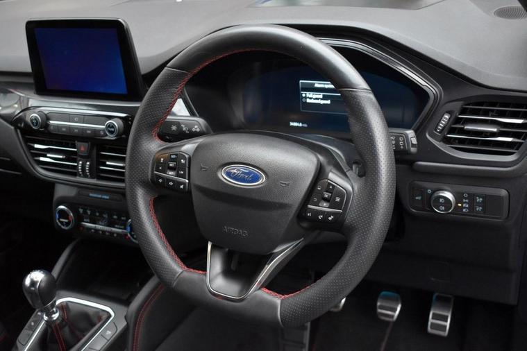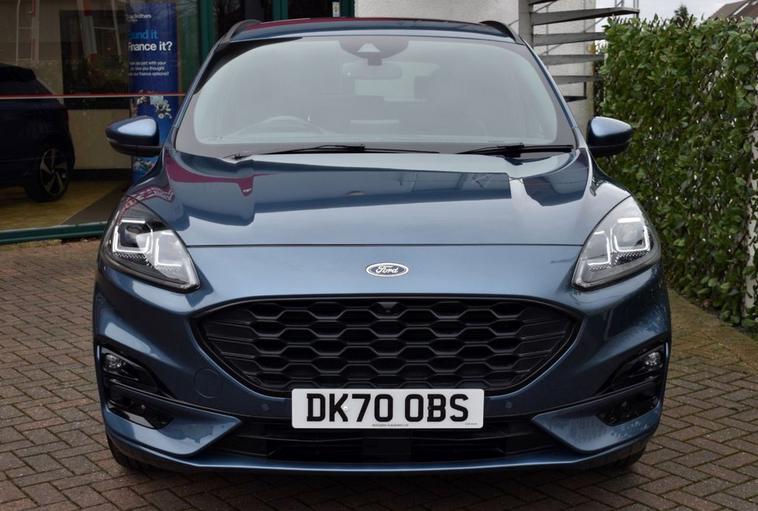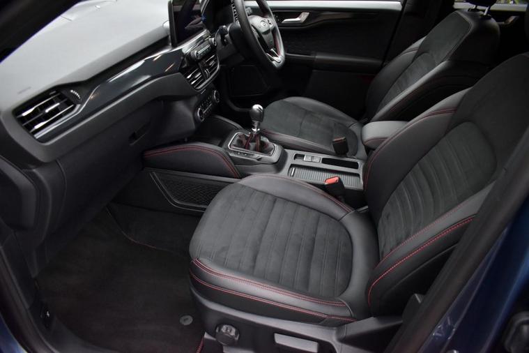 Blazer Blue metallic with full Black leather/alcantara interior and Red contrast stitching. High specification: Touch-screen interface with Ford SYNC 3 navigation, Apple CarPlay, wireless charging pad, smartphone interface with wireless audio streaming, heated front and rear seats, heated steering wheel, head-up display, front and rear park assist with both front and rear camera system, automatic all-LED headlight system, LED front fog lights, digital cockpit, speed sign recognition, DAB radio with Bang & Olufsen loudspeaker system, multi-function steering wheel with cruise control/limiter, power tailgate, 18 alloy wheels, door edge protectors, privacy glass, heated windscreen, 60/40 split-folding rear seats and more. Only two owners from new with full service history and both serviced and MOTd at point of sale in our on-site service centre. Original handbook pack and two remote keys.