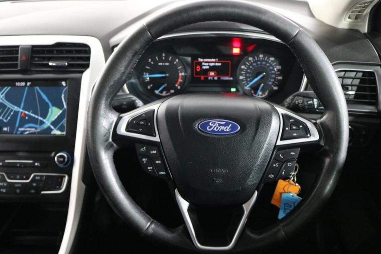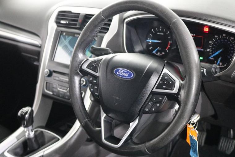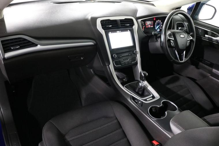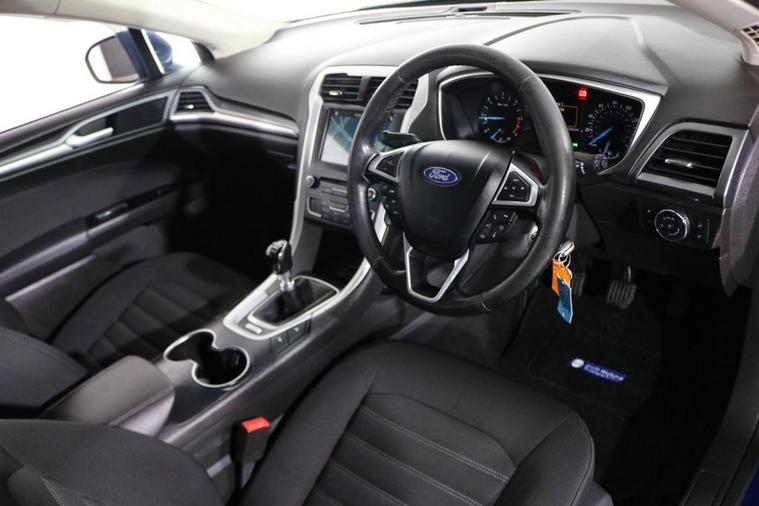 This well maintained Euro 6 Ford Mondeo Zetec Estate finished in Deep Impact Blue looks fantastic complemented by 16 inch Alloy Wheels, LED Running Lights and Rear Privacy Glass. Find your way with integrated SATELLITE NAVIGATION with TOUCHSCREEN Display. Park in ease with FRONT & REAR PARKING SENSORS. Listen to your music through DAB Digital Radio. Keep connected with BLUETOOTH Phone System. Comfortable to drive with Dual-Zone CLIMATE CONTROLLED AIR CONDITIONING and CRUISE CONTROL with Speed Limiting Function. Also equipped with ISOFIX seats, Power-Fold Door Mirrors, Multifunctional Steering Wheel, Quickclear Windscreen, Thatcham Cat. 1 Alarm and Remote Door Locking with 2 x keys. Buy in confidence with SERVICE HISTORY with 7 x Documented Services including NEW CAMBELT KIT fitted 6/9/25 at 105, 130 miles.