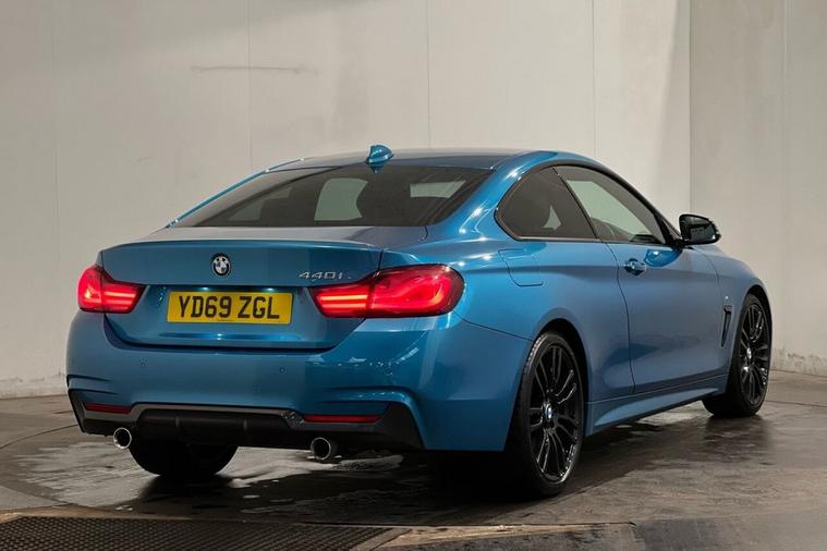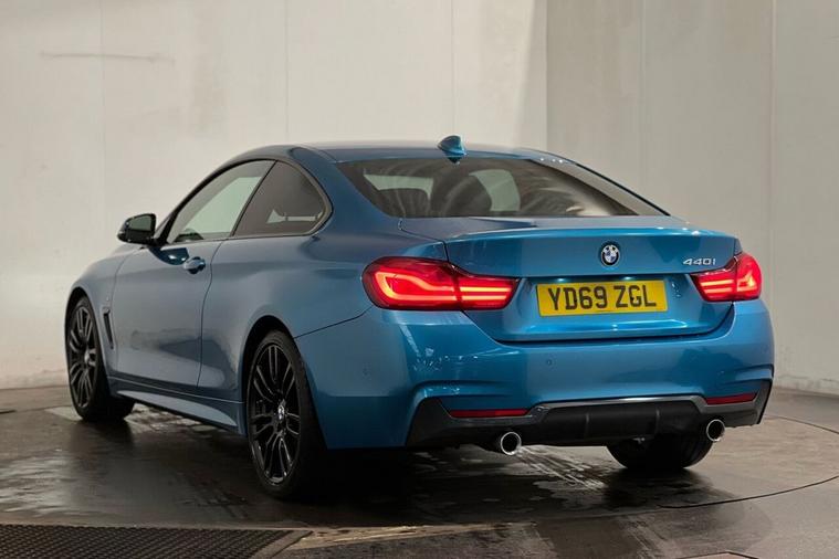 This 2019 BMW 4 Series 440i M Sport boasts a full dealership service history and a clear vehicle history check, offering you complete peace of mind. This striking M Sport model is powered by a potent 3.0 litre petrol engine, meeting Euro 6 emissions standards. It features desirable M Sport trim, 19 inch M Star Spoke 403M alloy wheels, and a dual split exhaust tailpipe with a chrome finisher. For added comfort and convenience, youll find seat heating for the driver and front passenger, along with sun protection glass. The BMW 4 Series 440i M Sport also comes equipped with a Park Assist Package, including a 360 degree camera and rear camera, making parking effortless. You can expect an impressive fuel economy of 34 miles per gallon, alongside low CO2 emissions, indicating its efficiency compared to other vehicles in its class. Furthermore, the generous boot space ensures practicality for all your needs.