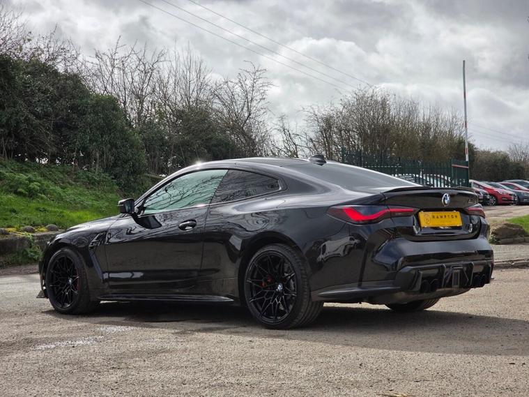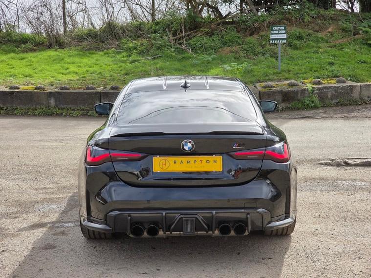 Presented by Hampton Car Sales, a company proud to hold over 250 verified five star Google reviews, this exceptional BMW M4 3.0 BiTurbo Competition Coupe Steptronic Euro 6 (s/s) delivering 510 ps is finished in the stunning Sapphire Black and has covered 63, 354 miles supported by a full service history. The Competition model is renowned for its blistering performance, razor sharp handling and premium build quality, powered by BMWs formidable 3.0 litre twin turbocharged engine paired with the seamless Steptronic automatic gearbox for rapid acceleration and effortless everyday usability. This example benefits from an outstanding factory specification including the striking 19 inch front and 20 inch rear M Double Spoke 826 forged alloy wheels finished in Jet Black with mixed tyres, giving the car an aggressive stance while also improving handling dynamics and grip. It is further enhanced by the highly desirable M Carbon Exterior Package, which adds lightweight carbon fibre aerodynamic elements that not only elevate the visual presence of the car but also improve airflow and performance inspired styling. Inside, the incredibly sought after M Carbon Bucket Seats provide a true motorsport feel, combining significant weight reduction with exceptional support and premium craftsmanship to create a driver focused cockpit. Comfort and convenience are also well catered for with the heated steering wheel for those colder mornings and Parking Assistant Plus, which offers advanced parking cameras and assistance systems to make manoeuvring and tight spaces effortless. In addition to the impressive factory specification, this M4 has been tastefully upgraded for serious performance, featuring a Stage 3 remap producing an incredible 770BHP, supported by a femto ECU unlock, decat downpipes, single midpipe, drop in panel filters, Stage 2 ECU tuning and Stage 3 TCU tuning to optimise gearbox response and power delivery. The vehicle has also recently undergone thorough maintenance including Ravenol Racing Competition oils, oil filter, air filters, NGK spark plugs, a full health check and a detailed engine bay clean, ensuring it is performing exactly as it should. This is a truly thrilling example that blends BMWs premium engineering with serious performance enhancements while retaining the comfort, technology and everyday usability expected from the M4 Competition. Finance can be arranged and part exchanges are welcomed.