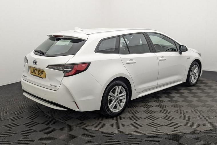 Henson Car Store presents the TOYOTA COROLLA 1.8 VVT-h GPF Icon Touring Sports 5dr Petrol Hybrid CVT Euro 6 (s/s) finished in White, this car comes with service history and is VAT qualifying. This 2021 Toyota Corolla VVT-h Icon is a superb example, having been owned by just one careful keeper since new. As a Euro 6 compliant model, it features a smooth and efficient 1.8L petrol hybrid engine, offering a refined driving experience. The Icon trim level ensures you benefit from a well appointed interior and a suite of practical features designed for everyday use. You will appreciate the impressive fuel economy of this Corolla, achieving an outstanding 61 miles per gallon, which is significantly better than many other vehicles in its class. Furthermore, its low CO2 emissions contribute to a more environmentally friendly drive. This model also boasts a generous boot space, making it ideal for shopping trips or carrying luggage, and its low insurance group rating means lower running costs. Stock Number 352